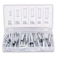 Q: Are these clevis pins resistant to corrosion?A: Yes, the clevis pins in this assortment kit are zinc coated, which provides excellent resistance to oxidation and corrosion, ensuring long-lasting durability even in harsh environments.