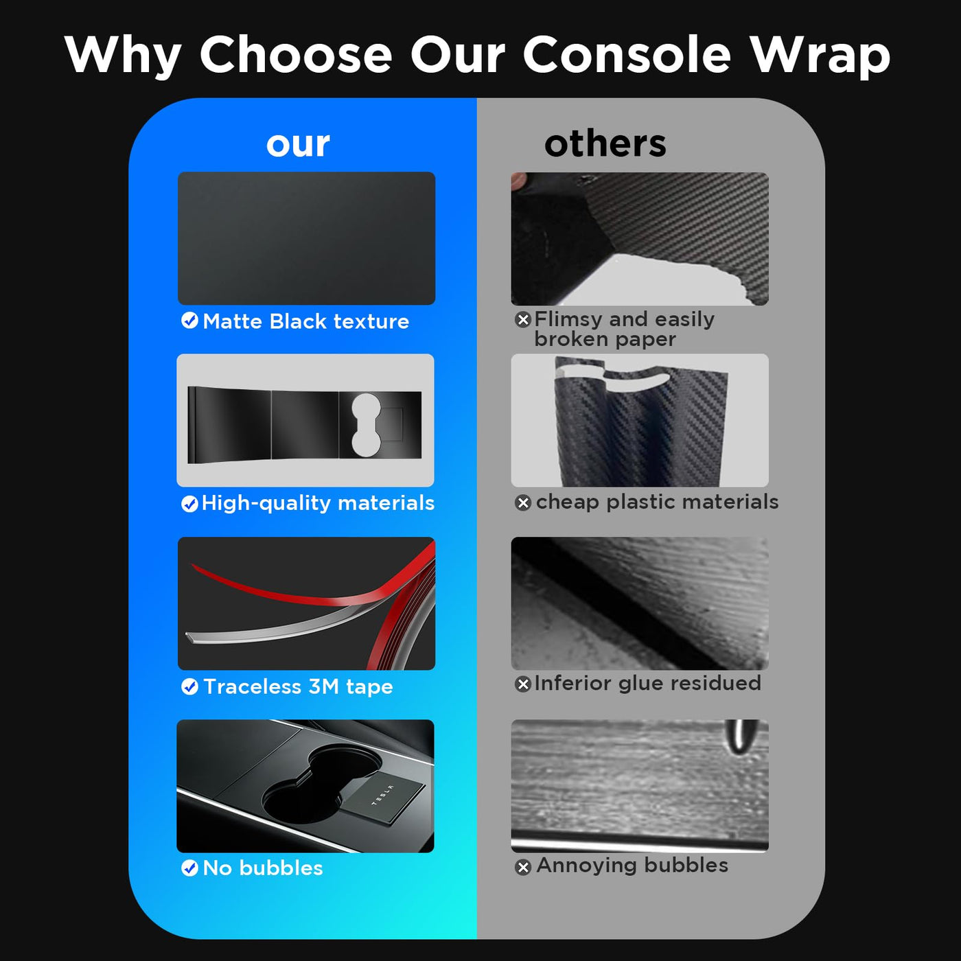 Upgrade Design: Specifically crafted for Tesla Model 3 and Model Y center console cover with card slot function, upgrade 3D design can perfectly fit the original accessories. | Premium Material: Made of high-grade ABS material, matte surface can avoid fingerprints. | Perfect Protection: Perfectly protects your Tesla Model 3 and Model Y Center Console from scratches, without affect the key card operating. | Easy installation: The process from tearing off the 3M tape to perfectly cover the wrap can be completed less than 1 minute. It won't leave any trace when removed. | One-Year Warranty: Our center console wrap provides one-year warranty service. Please feel free to contact us if you have any questions.