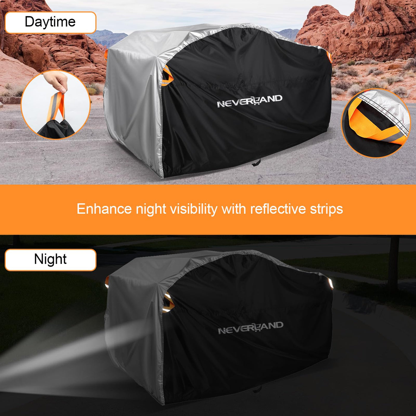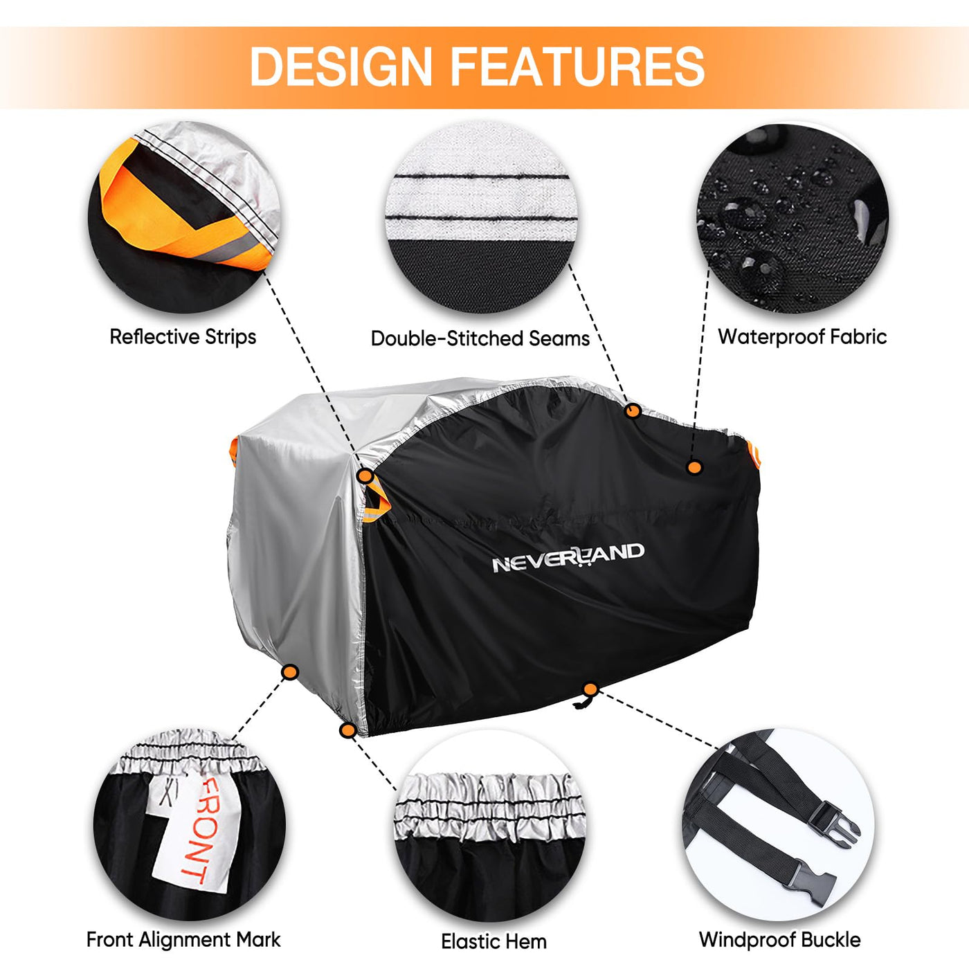 NEVERLAND Waterproof ATV Cover, Outdoor Heavy Duty Quad Cover Tear-Resistant 4 Wheeler Covers All Weather UV Protection for Polaris Sportsman Yamaha Honda Kawasaki Quad Bike (Silver & Black, XXXL)