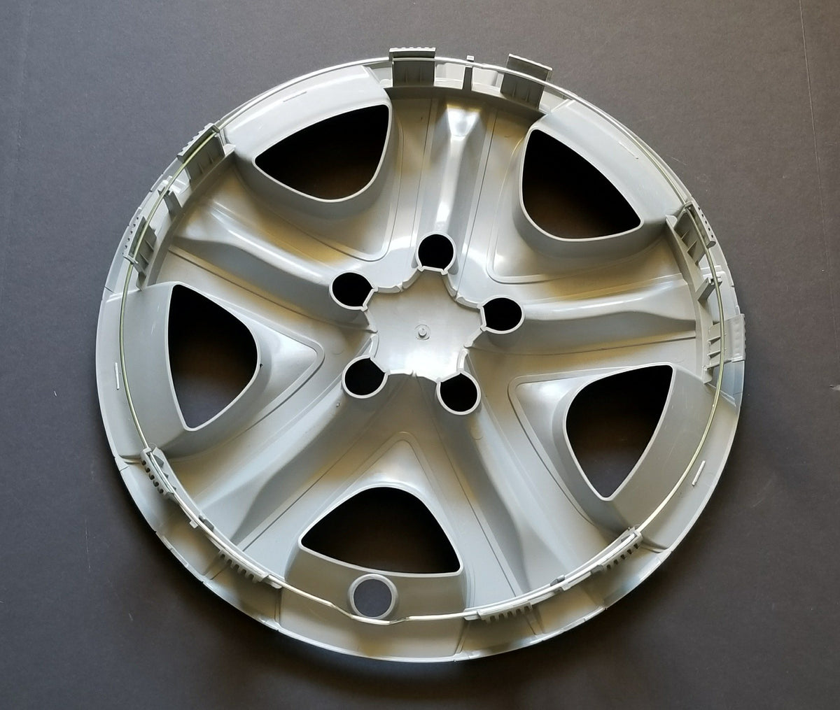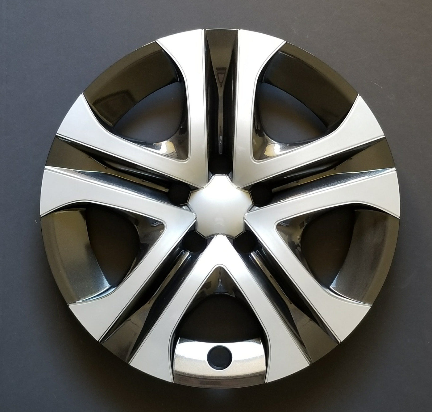 Q: What is the design and finish of these wheel covers?A: These wheel covers feature a 5 spoke design with a gloss painted finish in silver and black, providing a stylish upgrade to your vehicle's appearance.