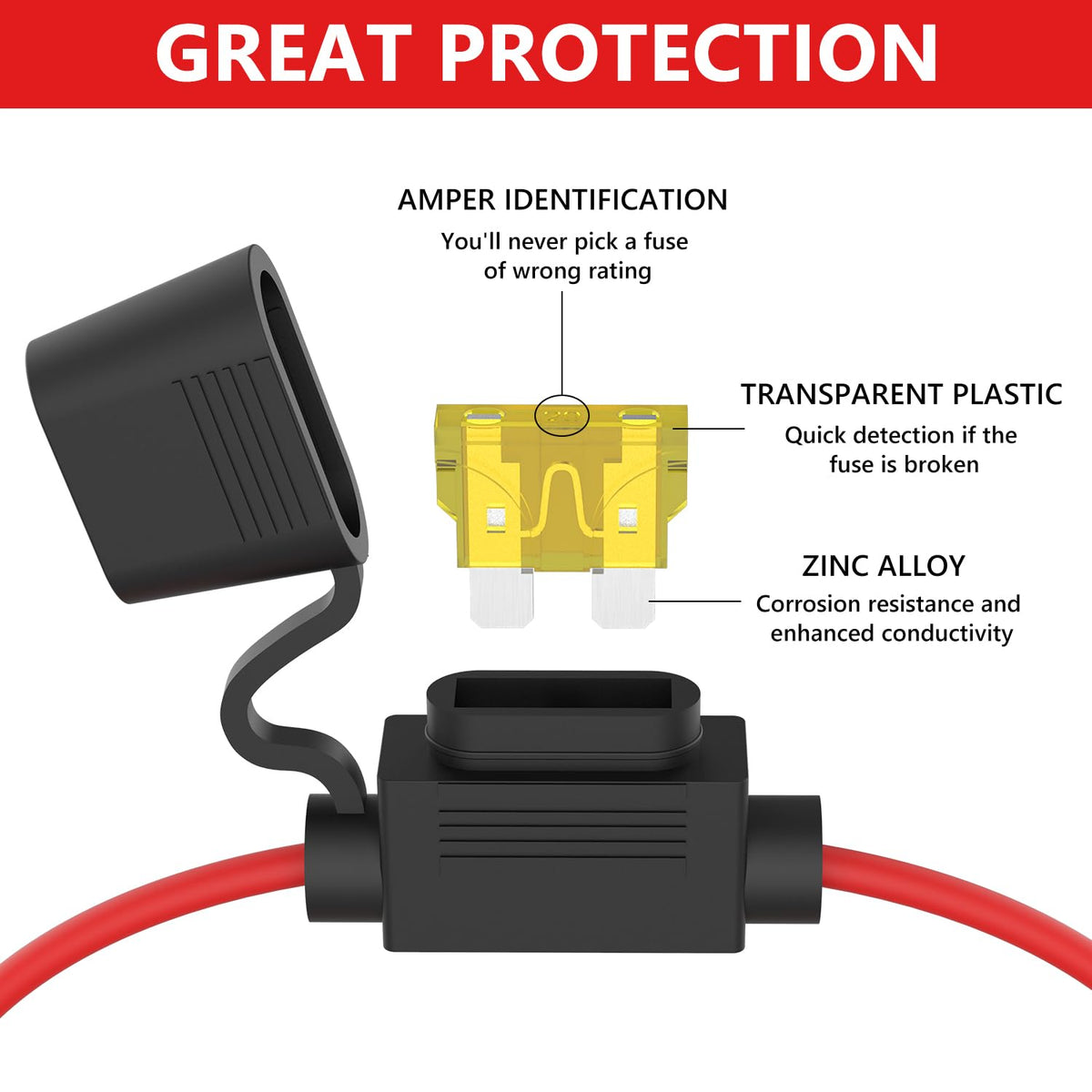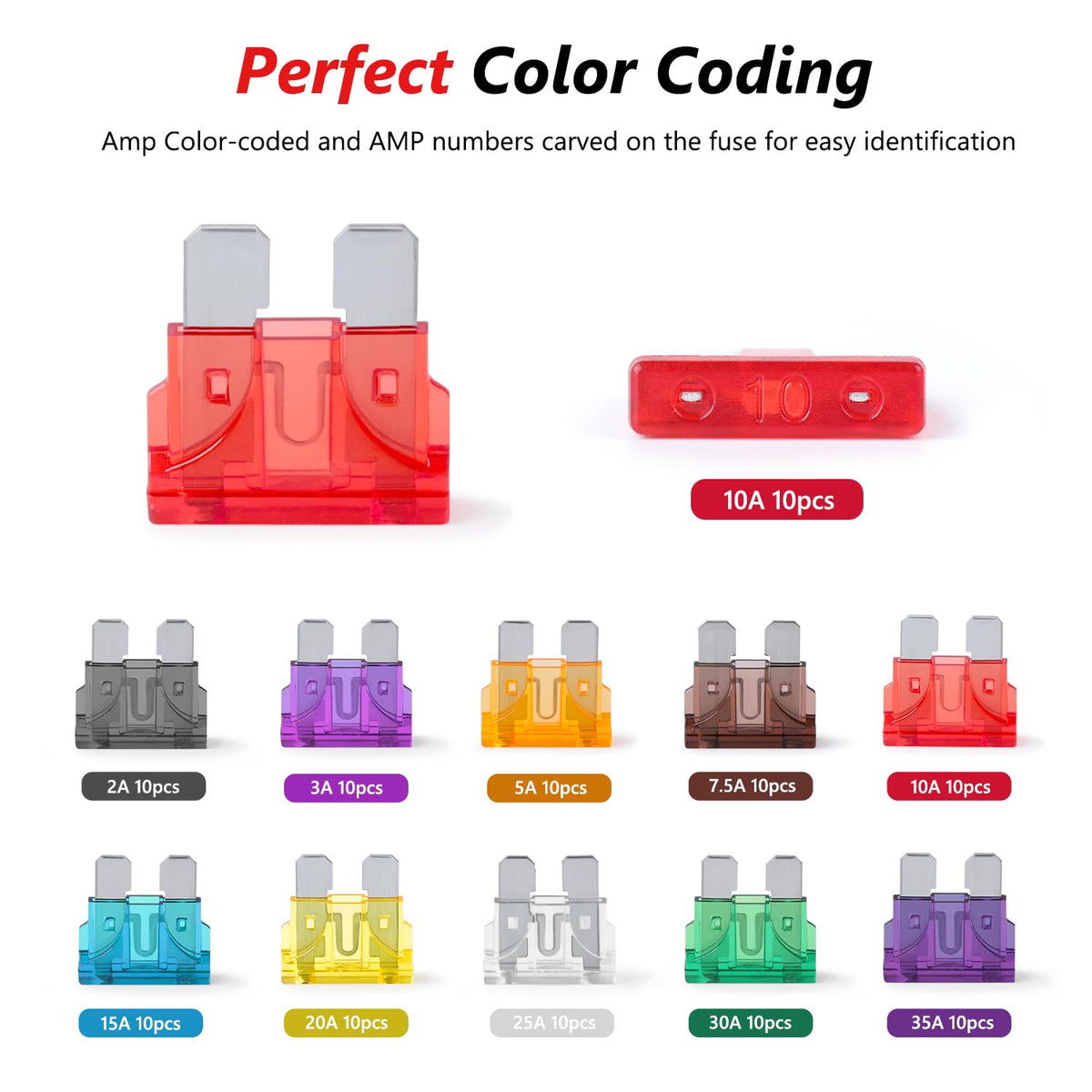 Newdeli 10Pack 14AWG Inline Fuse Holder 12V ATO/ATC Waterproof in Line Fuse Holder with 100Pcs Standard Blade Fuse 2A/3A/5A/7.5A/10A/15A/20A/25A/30A/35A AMP Assorted Set for Marine Car Automotive