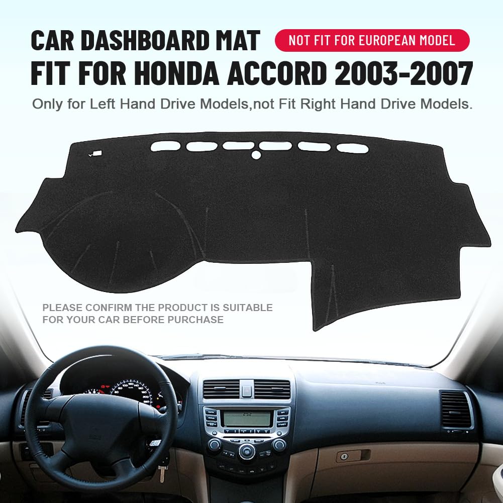Specification:Condition: Brand newColor: BlackMaterial: PolyesterFitment:Fit for HONDA ACCORD 2003-2007Not Fit For European ModelOnly for Left Hand Drive Models, not Fit Right Hand Drive Models.Please confirm the product is suitable for your car .Package Included:1Pcs Dashboard cover