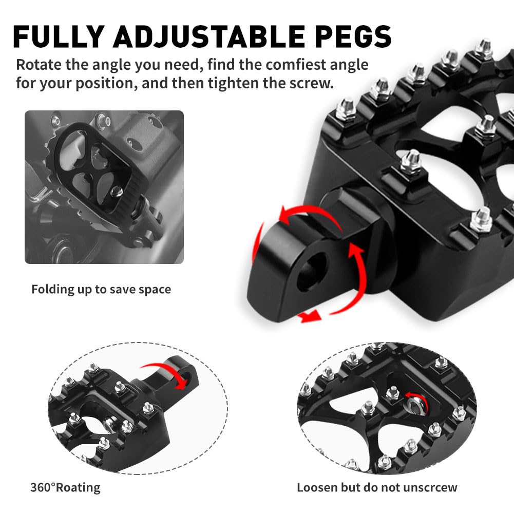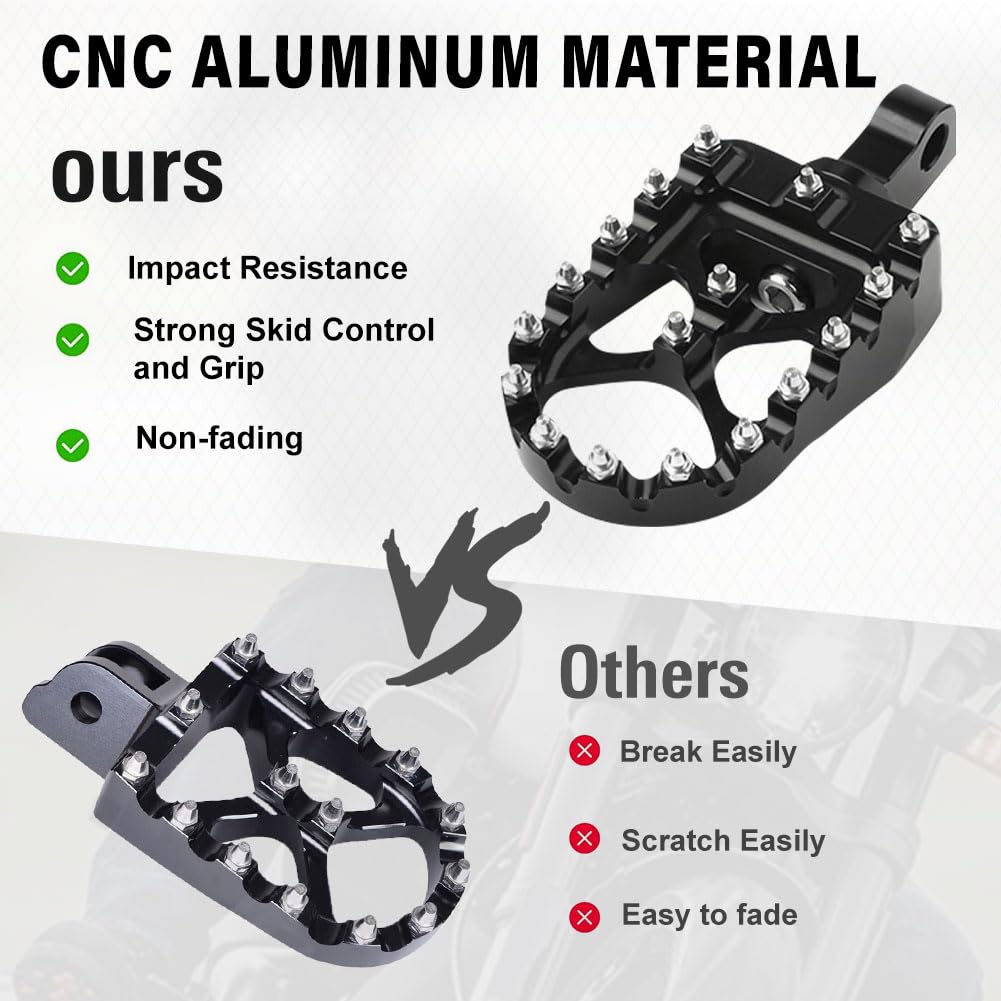 Q: What material is used in the construction of these foot pegs?A: The Newsmarts Black Rear Passenger Foot Pegs are made from high-quality CNC aluminum alloy, ensuring durability and resistance to wear and tear, making them ideal for long-term use on your motorcycle.