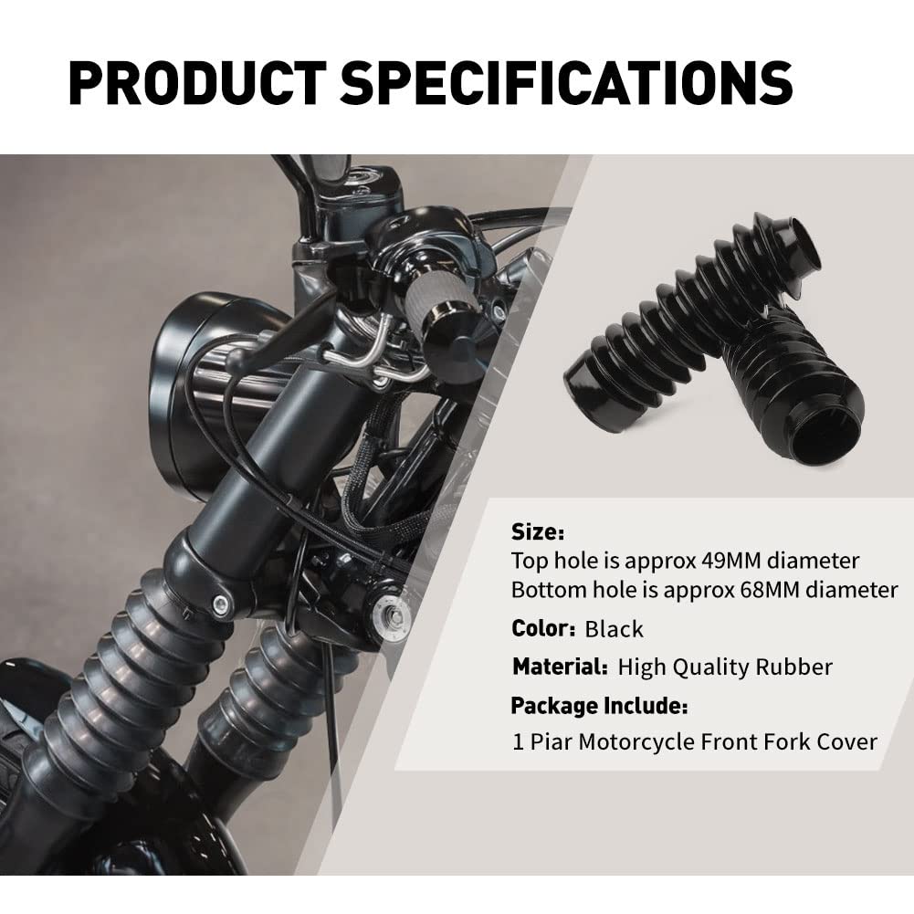 Newsmarts Motorcycle 49mm Fork Covers Front Rubber Gaiters Gators Shock Boots Compatible with for Harley Dyna FXDWGI FXDWG