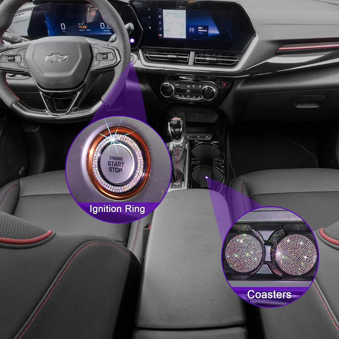 Newzon Ab Bedazzled Crystal Car License Plate Cover 2 Pieces, Color Bling License Plate Frames With High End Ribbon Gift Box, Diamond Car Accessories With Coaster, Rhinestone Ignition Ring For Women
