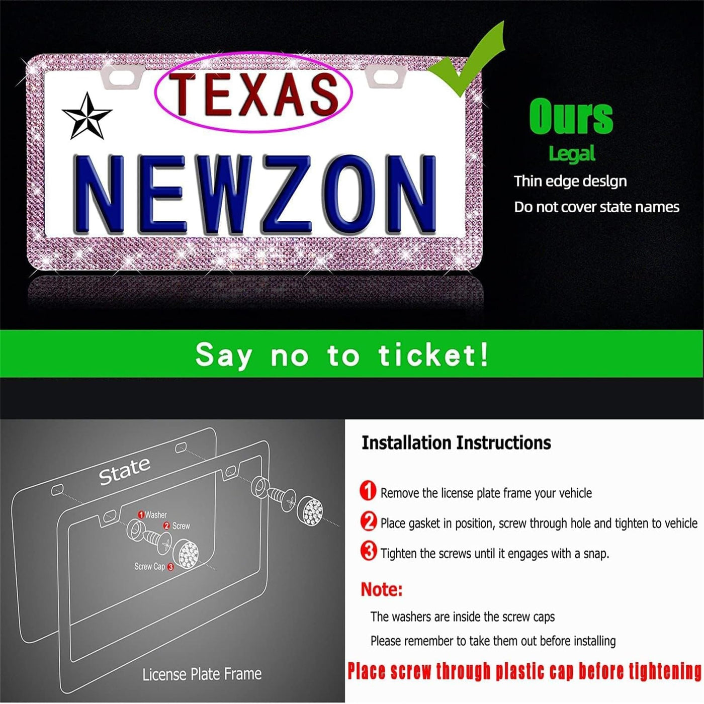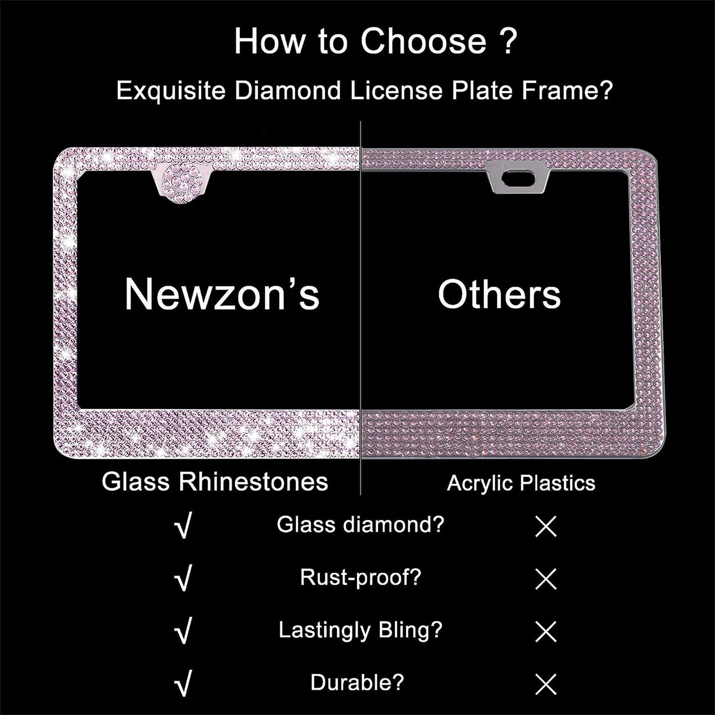 All The Time, Newzon Bling License Plate Frame Made By High Quality Glass Rhinestone Are Real Sparkly. They Visually Highlight The Handmade Craftsmanship And Fine Diamond Positioned At The Top Of The Stainless Steel License Plate Frame.