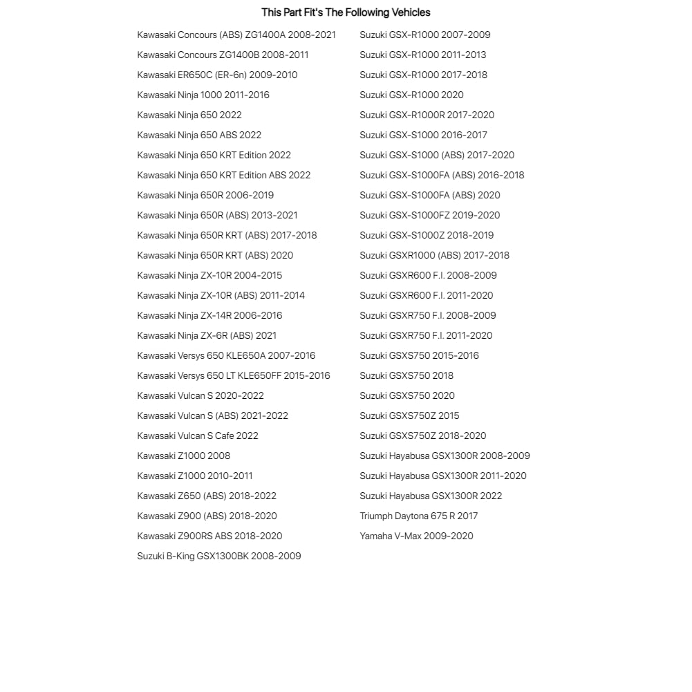 Q: Is the NGK Iridium Sparkplug CR9EIA-9 compatible with other motorcycle models?A: While the NGK Iridium Sparkplug CR9EIA-9 is specifically designed for Kawasaki Ninja ZX-10R models from 2004 to 2015, it may also fit other motorcycles that require similar specifications. Always check your motorcycle's manual or consult a professional for compatibility.