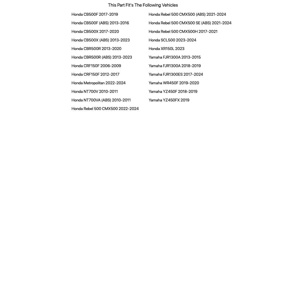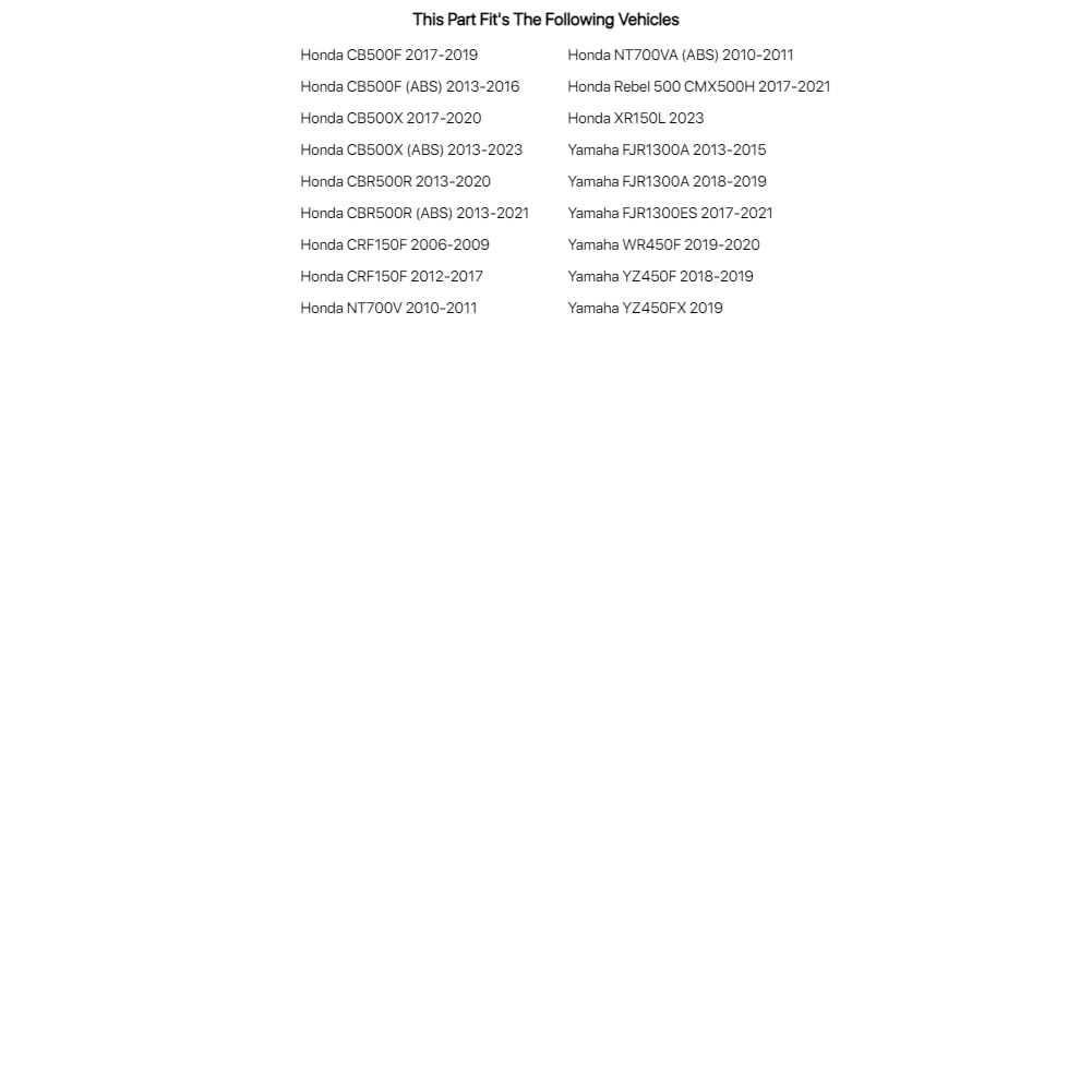 Q: What vehicles are compatible with the NGK CPR8EA-9 spark plug?A: The NGK CPR8EA-9 spark plug is specifically designed for use in Honda CRF150F models from 2012 to 2017, ensuring optimal performance and compatibility.