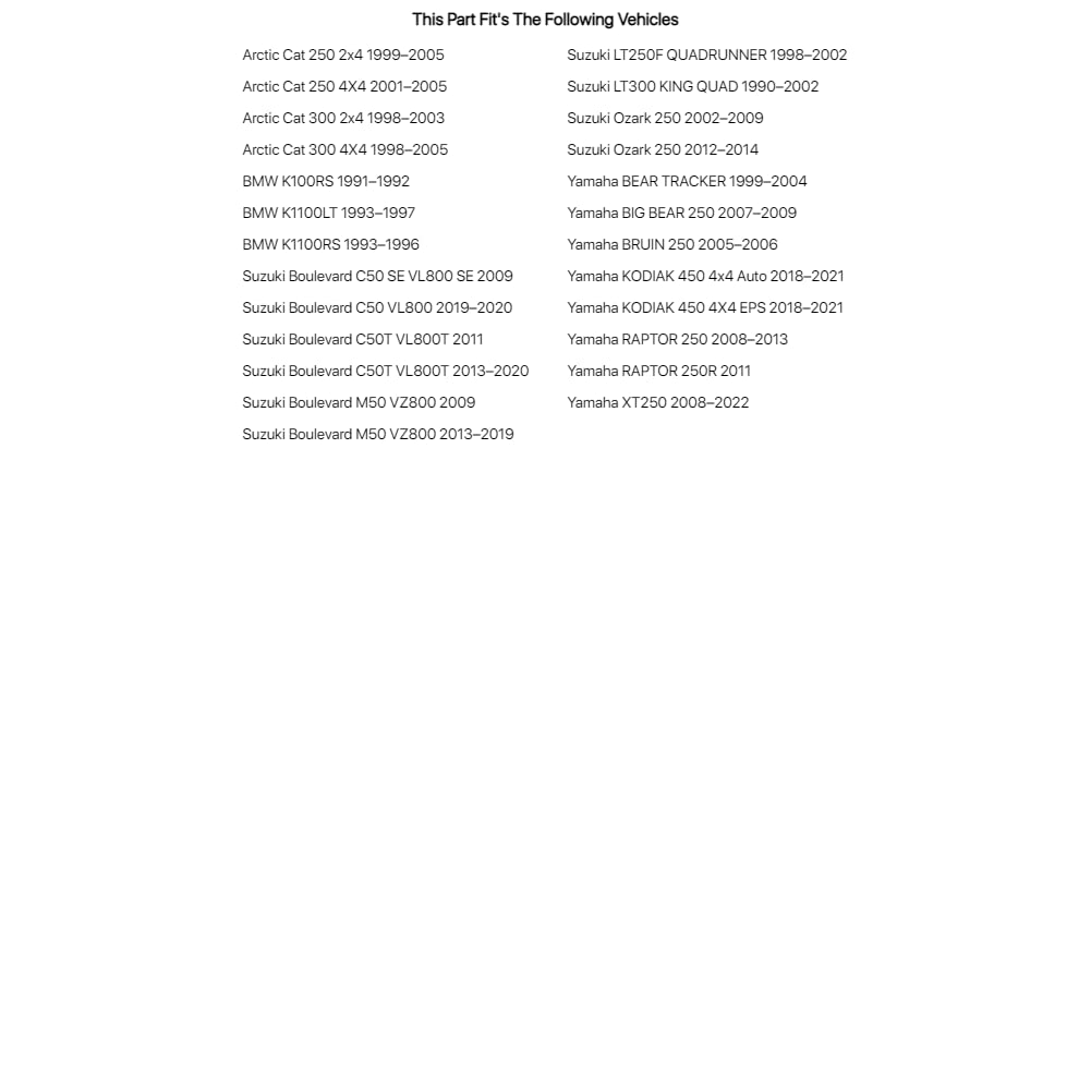 Q: What vehicles are compatible with the NGK Resistor Sparkplug DR7EA?A: The NGK Resistor Sparkplug DR7EA is specifically designed for Yamaha Bear Tracker models from 1999 to 2004. Always check your vehicle's manual or consult with a professional to ensure compatibility.