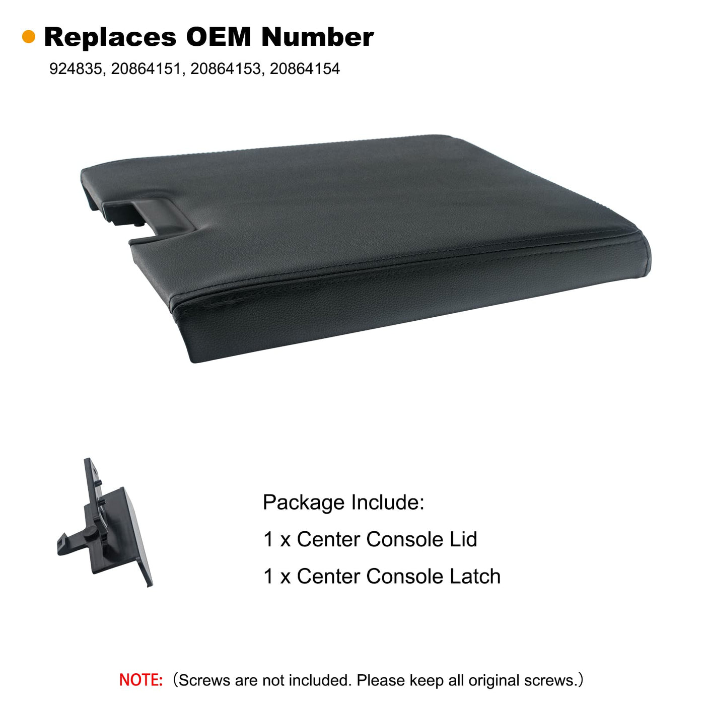 Q: Are there any specific part numbers I should check for compatibility?A: Yes, you should check for compatibility with part numbers 924835, 20864151, 20864153, and 20864154 to ensure that this center console lid fits your vehicle.