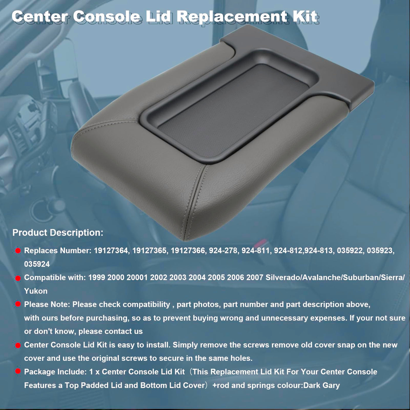 NHILES Center Console Lid Replacement Kit for 1999 2000 2001 2002 2003 2004 2005 2006 2007 Silverado/Avalanche/Suburban/Sierra/Y