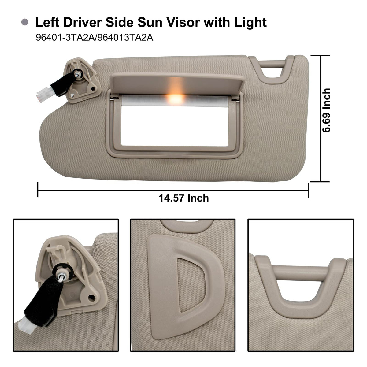 Nhiles Left Driver Side Sun Visor Compatible With Nissan Altima 2013 2014 2015 2016 2017 2018 With Light, Without Sunroof 96401-