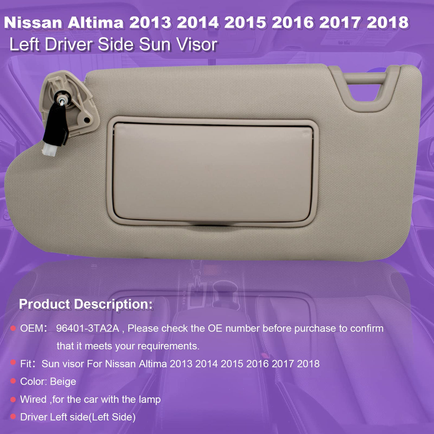 Compatible With:Sun visor For Nissan Altima 2013 2014 2015 2016 2017 2018 . Please check if your vehicle year is applicable before purchasing to confirm that it meets your requirements.