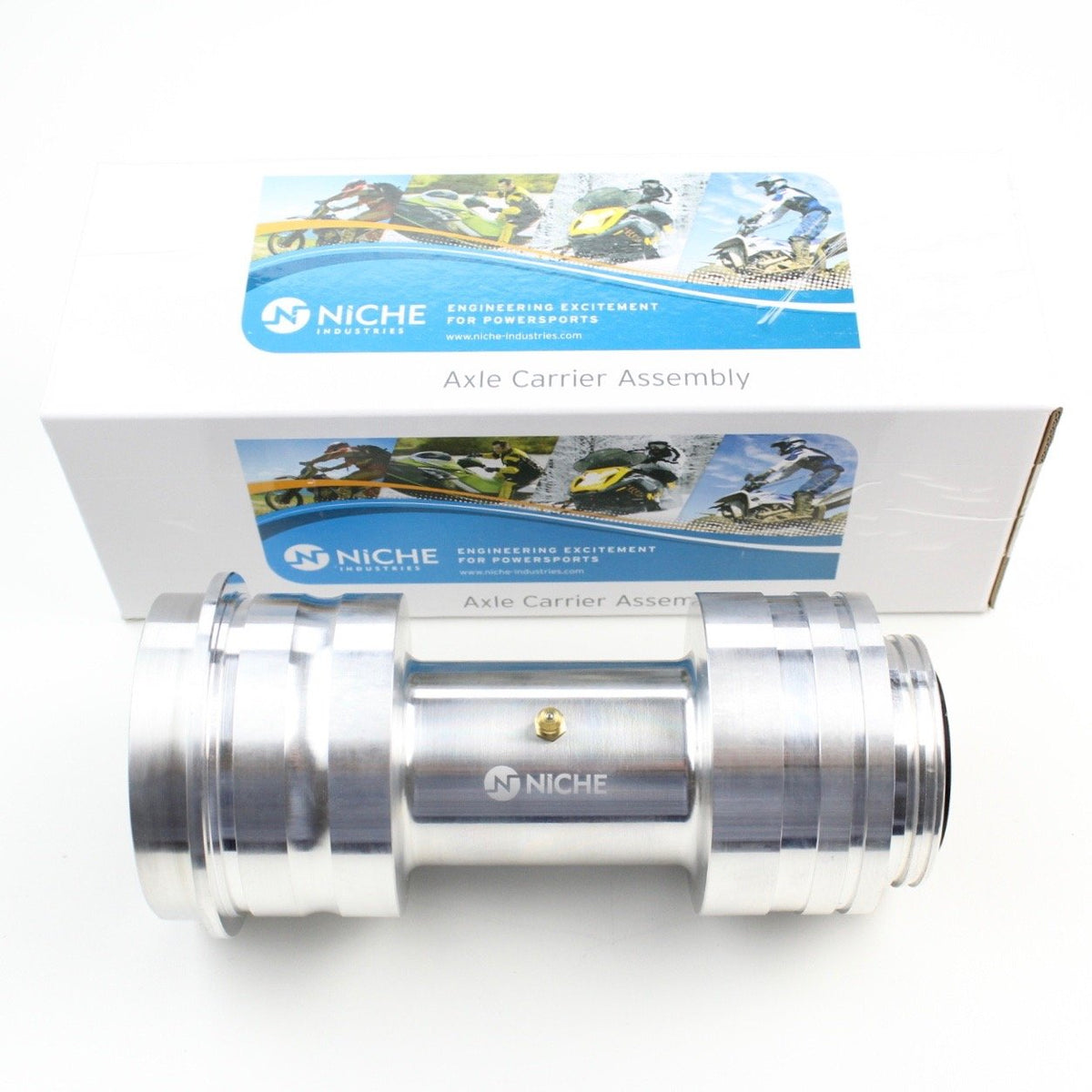 Q: Is installation of the NICHE Adjustable Performance Solid Axle Carrier complicated?A: Installation is straightforward for those with basic mechanical skills. The package includes all necessary components such as spacers, lock nut, castle nuts, and lock ring, making it easier to replace your existing axle carrier.