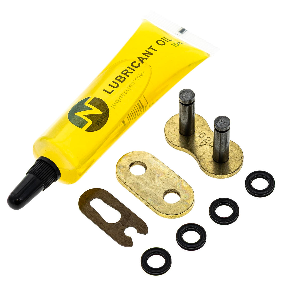 Q: What maintenance is required for the NICHE Gold 520 X-Ring Chain?A: To maintain the NICHE Gold 520 X-Ring Chain, it is recommended to regularly clean and lubricate the chain using high-temperature chain oil, such as LT-001A. Regular maintenance will enhance the chain's performance and longevity.