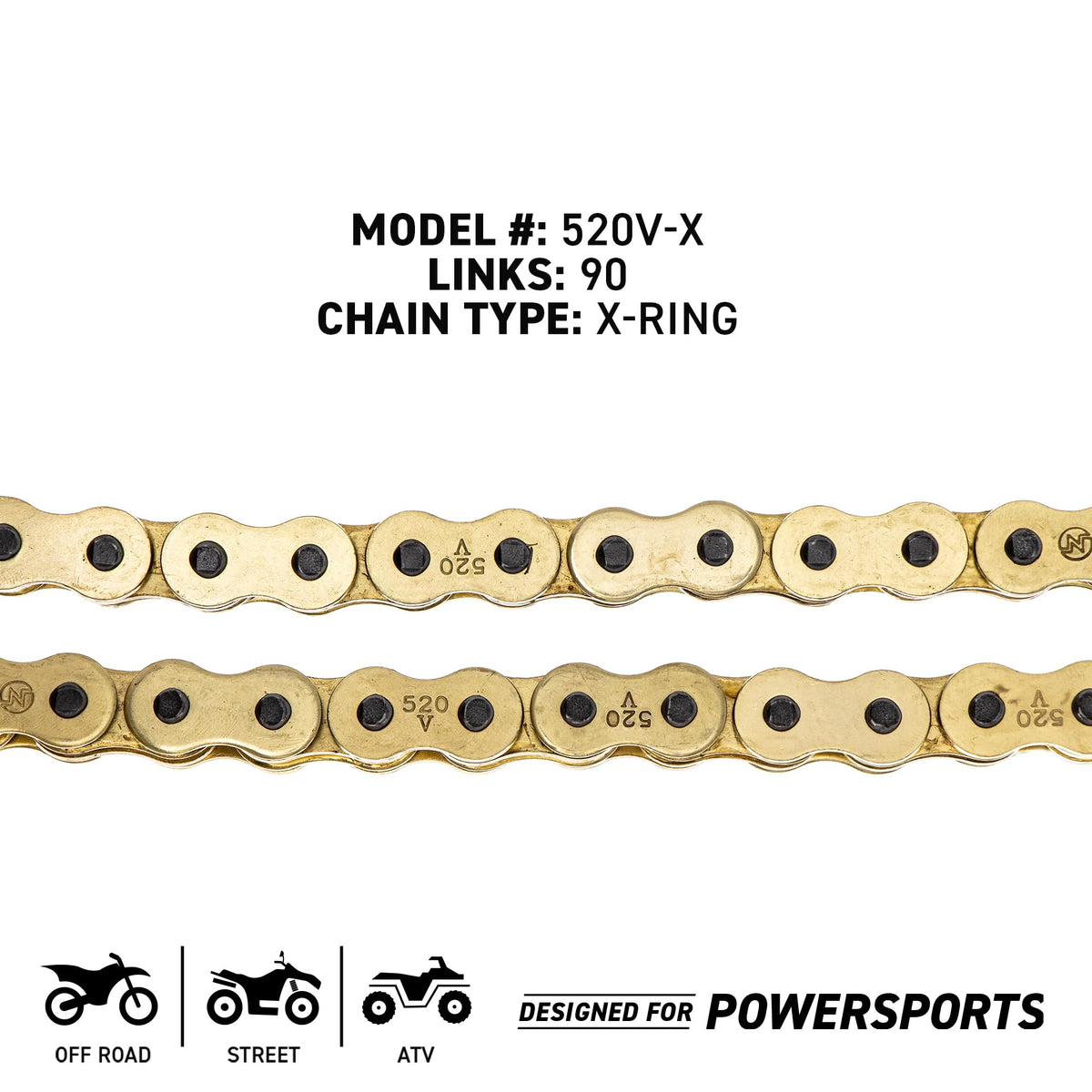 Q: Is the NICHE Gold 520 X-Ring Chain compatible with my Honda ATC185?A: Yes, the NICHE Gold 520 X-Ring Chain is a direct replacement for several OEM part numbers, including those for the Honda ATC185 (1980 model). Always verify your specific model's requirements before installation.