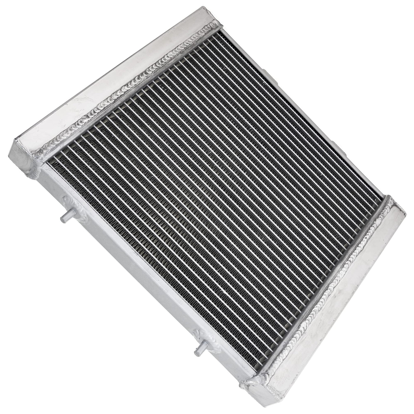 Q: What are the dimensions of the NICHE Radiator?A: The NICHE Radiator has a height of 393.5mm, width of 484.5mm, and length of 68.5mm, with a core height of 318mm, core width of 300mm, and core depth of 26mm.