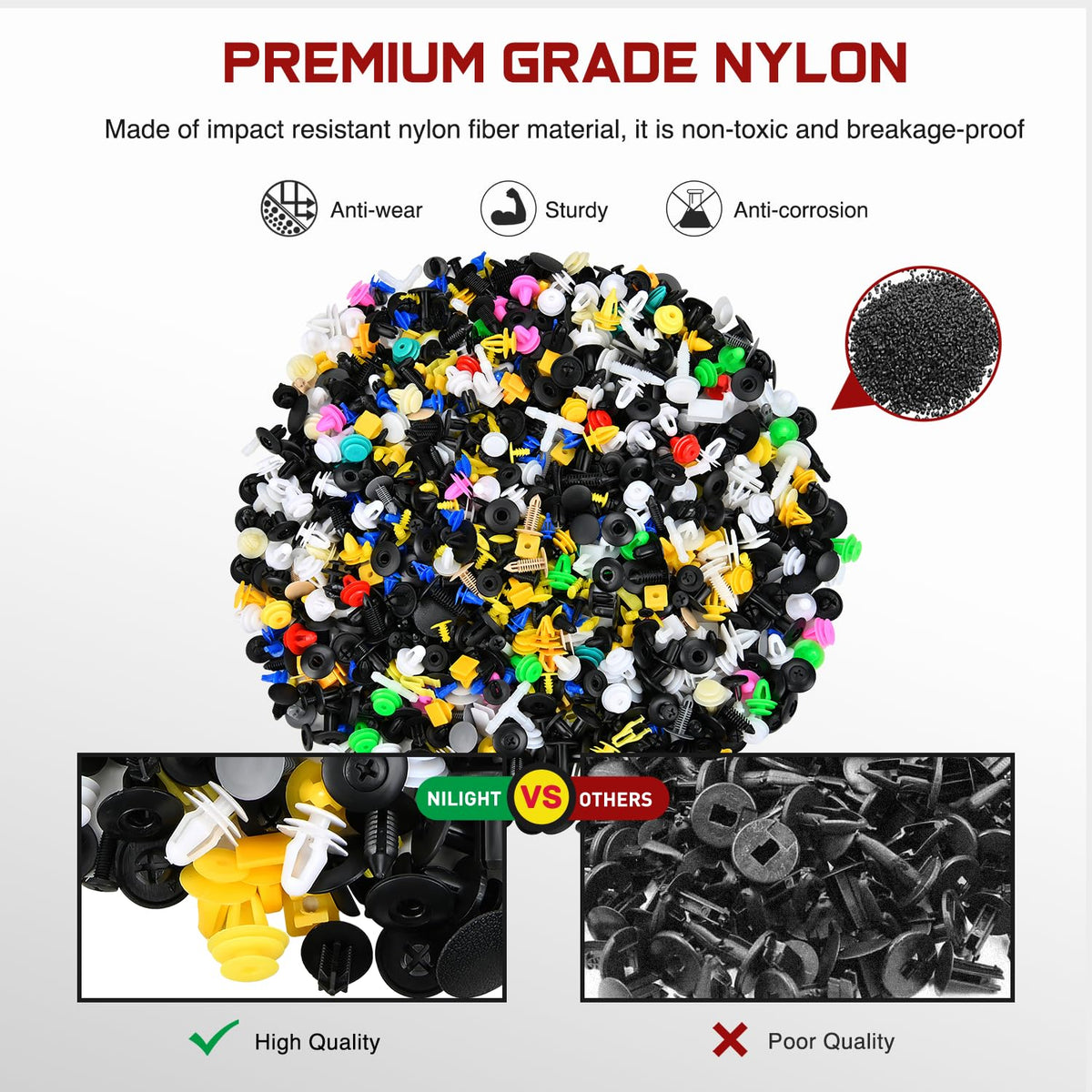 Nilight 1001Pcs Universal Car Clips Mixed Auto Bumper Fender Trim Door Panel Shield Engine Cover Retainer Rivet Push Clips For G