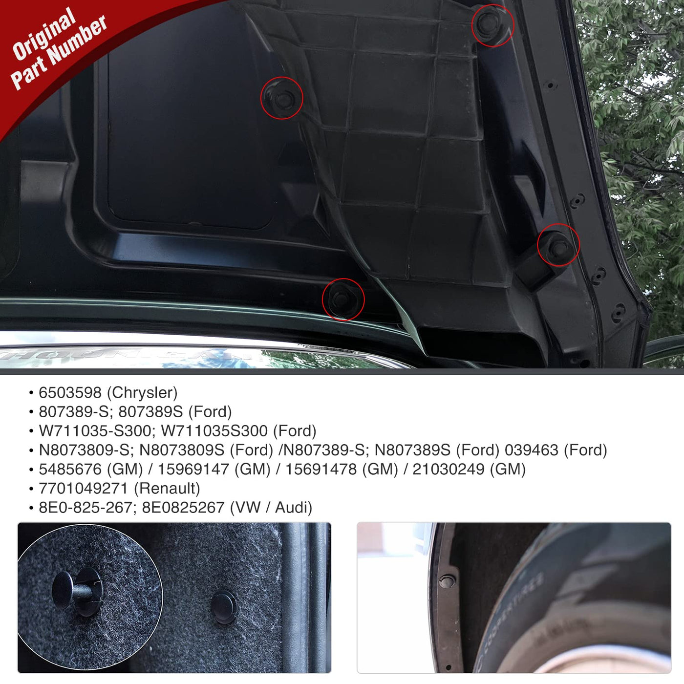 Nilight 100pcs Trim Door Panel Retainer Clips 8mm Hole.Replacement for GM, Ford and Chrysler selected models push-type retainer clips. Made of high quality nylon better than recycled nylon, polypropylene (PP) or ABS. Head diameter: 20mm; stem length: 20mm and fits hole: 8mm (5/16”). Prior to ordering please verify if the part fits your vehicle - original part number: GM #21030249, Ford #N807389S Kawasaki: Brute Force / Bayou / Prairie / KFX700, 450, 400; Suzuki: King Quad / Vinson / Eiger / Ozark / Z 250, 400; Polaris: Sportsman / Rangers / RZR / Trail Boss / Predator / Scrambler.