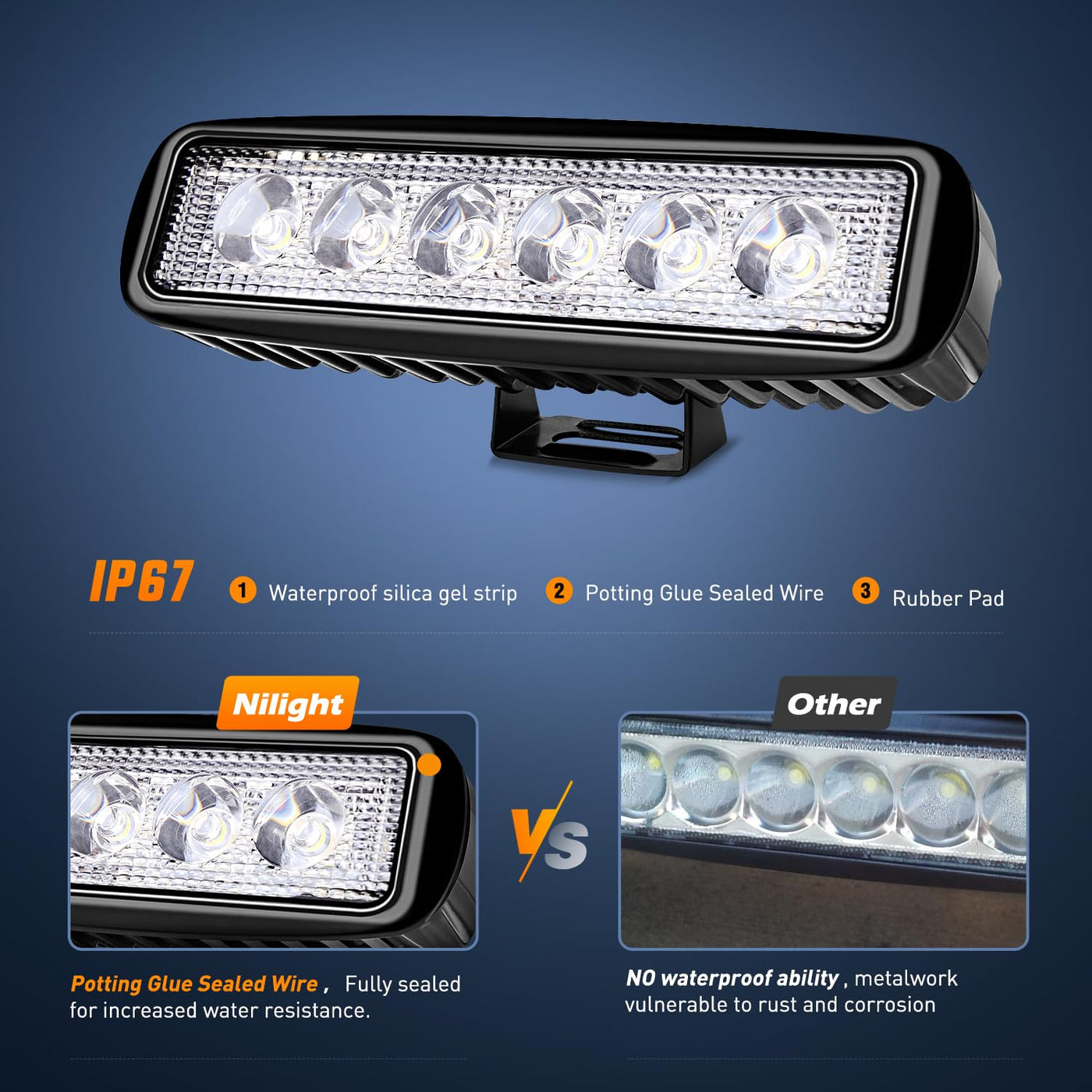 Nilight - 15019S-B Led Light Bar 2Pcs 18W Spot Driving Fog Light Off Road Lights Boat Lights Driving Lights Led Work Light Suv J