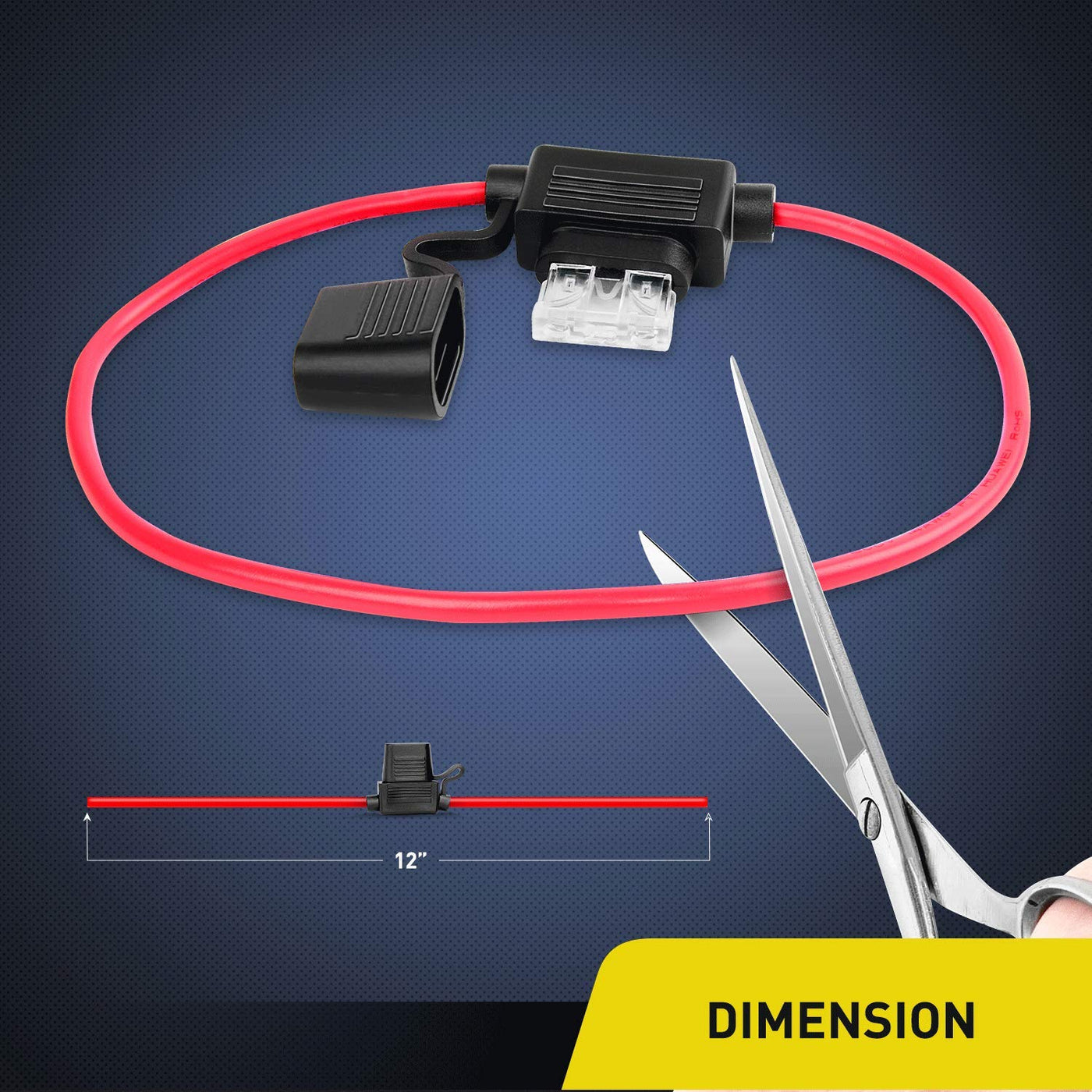Q: How do I install the inline fuse holder included in this set?A: To install the inline fuse holder, connect the 14AWG wires to your circuit, ensuring that the holder is positioned to protect the circuit. Simply insert the appropriate fuse into the holder to complete the installation.
