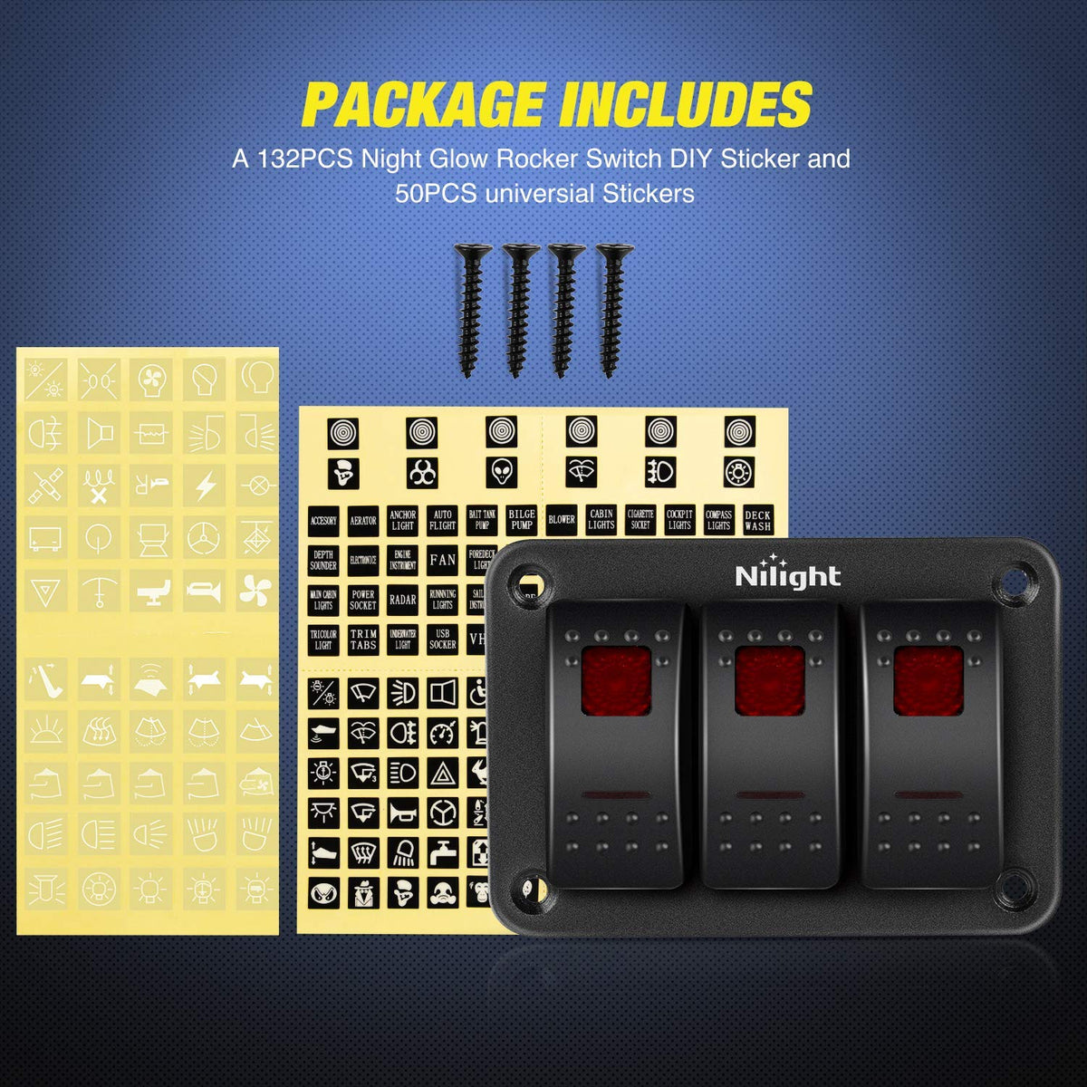 Nilight - 90019C 3 Gang Aluminum Rocker Switch Panel Toggle Dash 5 Pin On/Off Pre-Wired Rocker Switch Red Backlit Switch For Aut