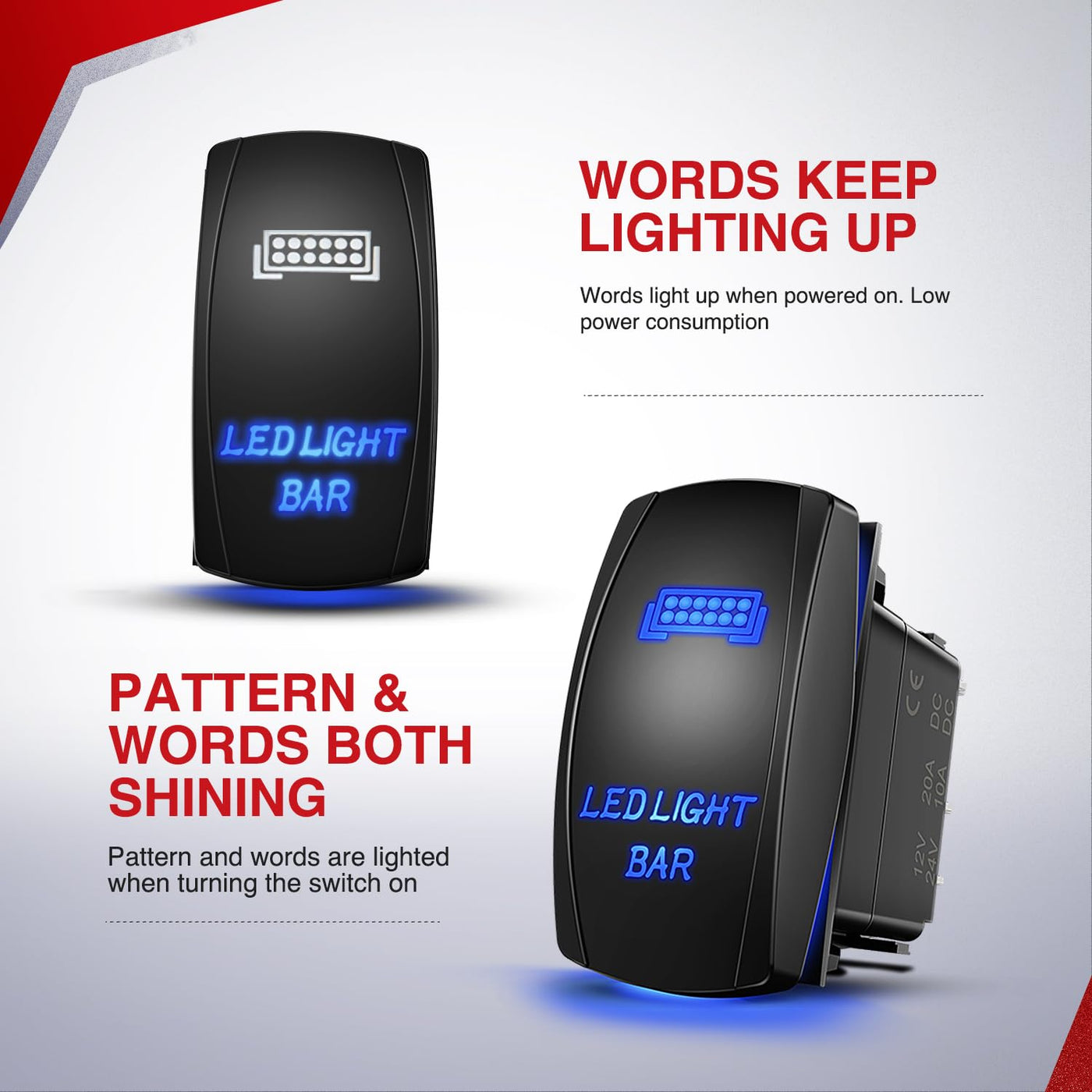 Heavy-duty Harness: 12 AWG stranded wire, up to 450 W load capacity. The harness is protected by power relay and inline blade fuse as the first Line of defense against overcurrent and short circuits | 5 Pin Rocker Switch: Nilight 5 pin on-off rocker switch with SPST design (single pole single Throw), simple installation, freely turn on or off the light. Built-in two premium LEDs emits soft light to illuminate the patterns, easy for you to find the switch in the dark | Durable Nylon Material: High-quality nylon jacket of the wiring harness kit provides superior durability, safety, flexibility and high-temperature resistance | Wide Application: This wiring harness is suitable for almost all 12V battery vehicles such as automotive cars, campers, RVs, ATVs, UTVs, motorcycles, ships yachts, and trailers | Package Includes: 1 x wiring harness kit, 1 x 5 Pin LED rocker switch, 1 x instructions, blade fuses and spade connectors