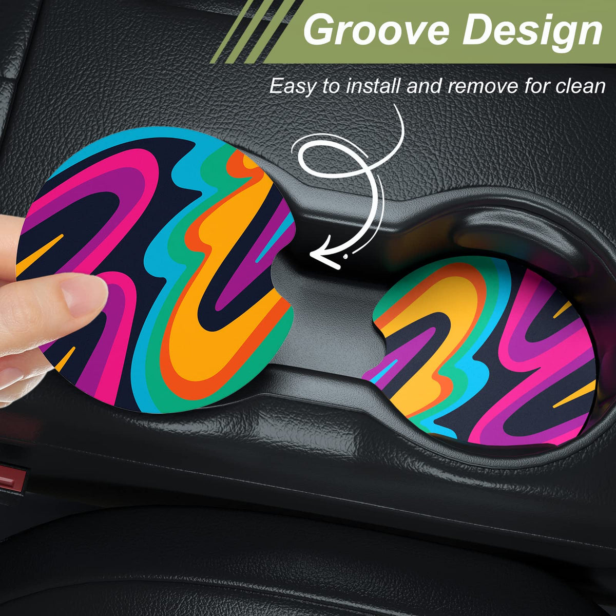 Nipichsha Car Cup Holder Coasters, Car Coasters for Cup Holders, 2 Pack Universal Anti Slip Insert Rubber Mat with A Finger Notc