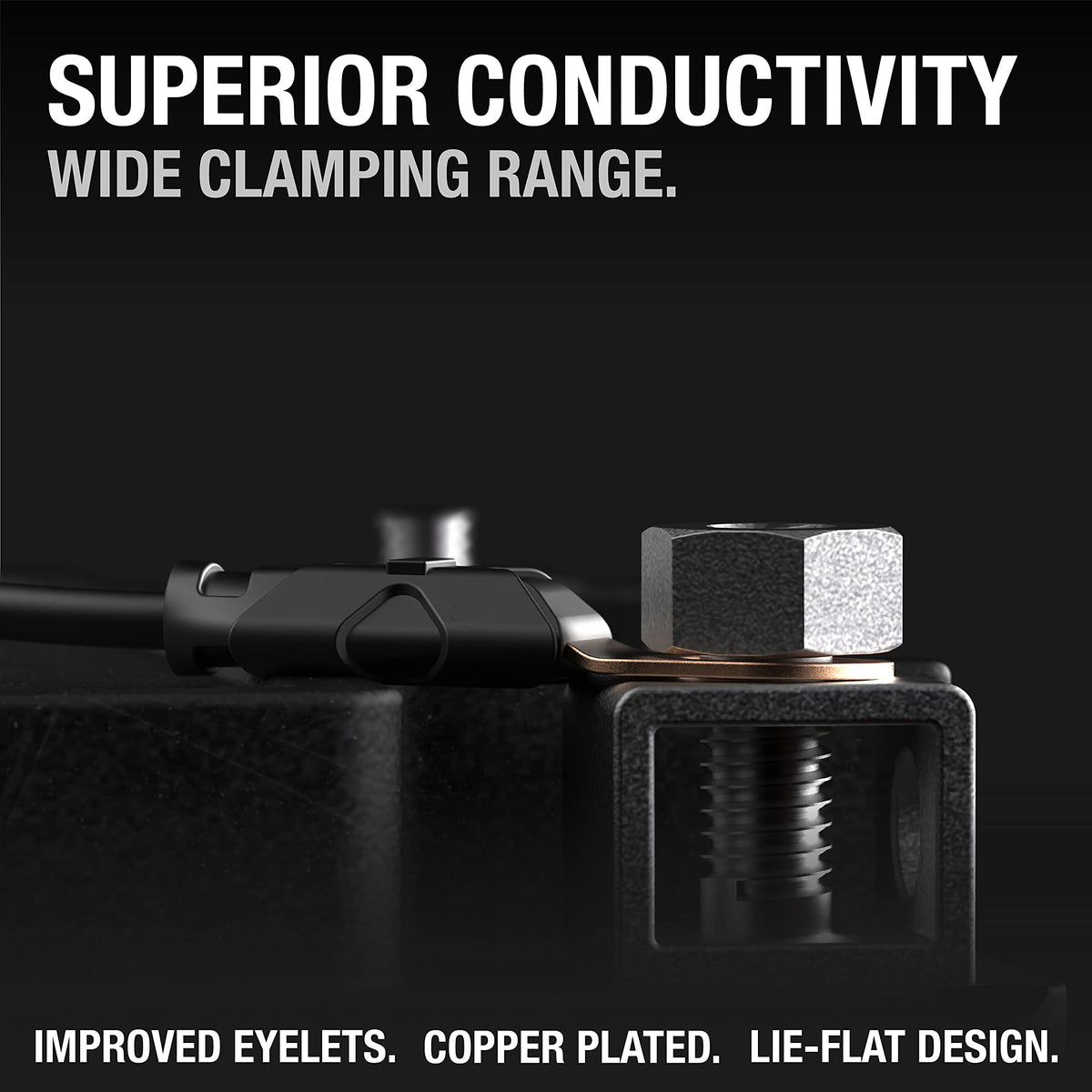 The GC008 X-Connect XL Eyelet Terminal Accessory is compatible with G750, G1100, G3500, G7200, and G4 chargers, as well as GENIUS1, GENIUS2, GENIUS2X2, GENIUS2X4, GENIUS5, and GENIUS10. It features a lie-flat design for seamless installations with an M10 hole size. Not compatible with NOCO Boost or Boost X UltraSafe Lithium Jump Starters.