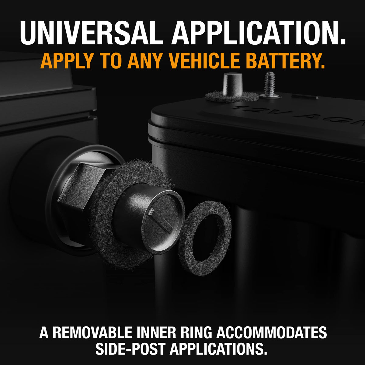 The NOCO B603 NCP2 Oil-Based Battery Terminal Protectors, Anti-Corrosion Washers, And Battery Corrosion Pads are designed as a battery corrosion inhibitor against battery corrosion causing acid fumes that seep through improperly sealed batteries. These anti-corrosion battery washers are made from 100-percent organic non-woven felt and saturated in our oil-based NCP2 battery corrosion preventative compound that lasts indefinitely without drying or evaporating. And suitable for both top-post and side-post battery terminal applications.