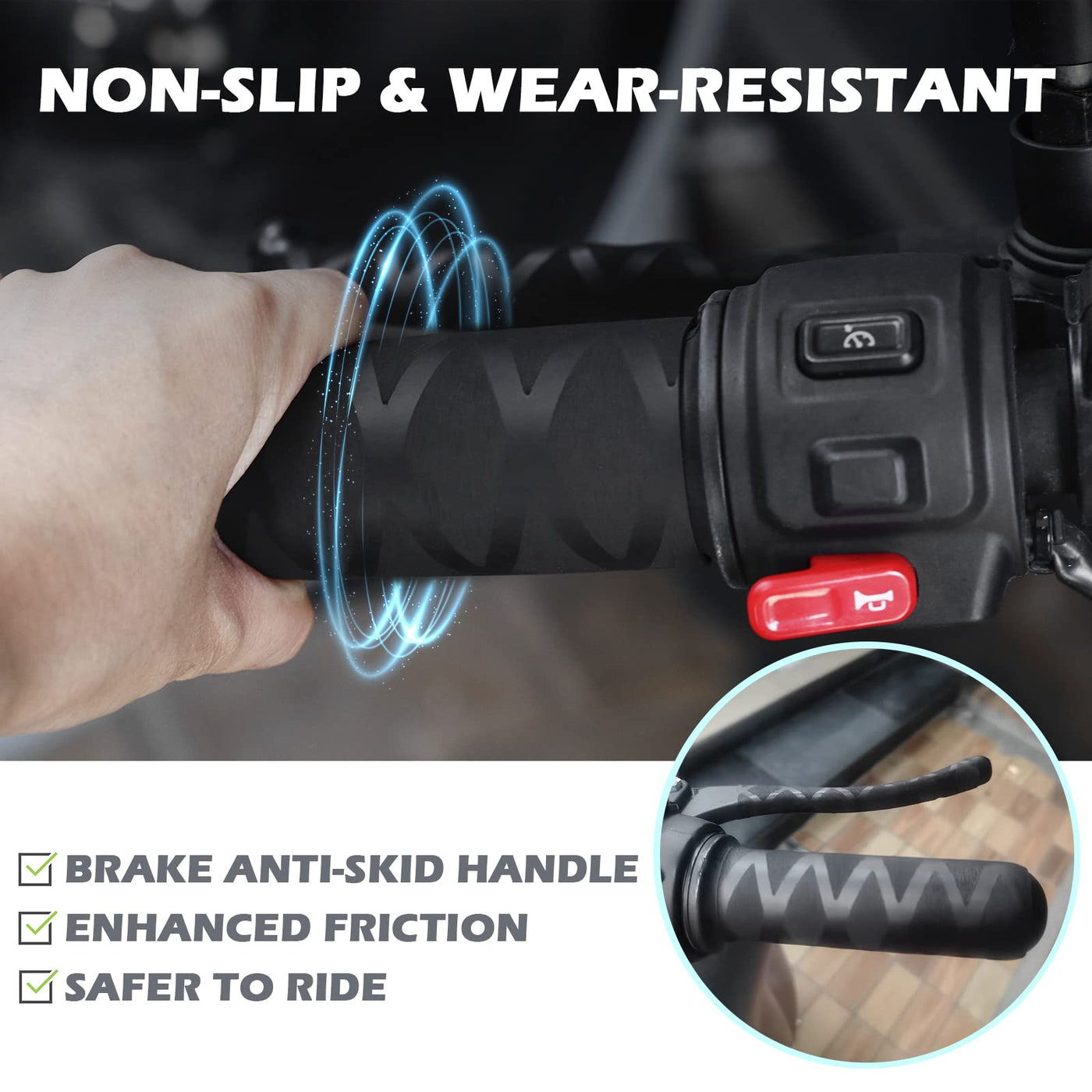 Q: Can these grips improve my handling and safety while riding?A: Absolutely! The anti-skid design and wear-resistant nature of these grips enhance your handling, reducing the risk of slippage from sweaty fingers or rainy conditions, ultimately improving your safety while riding.