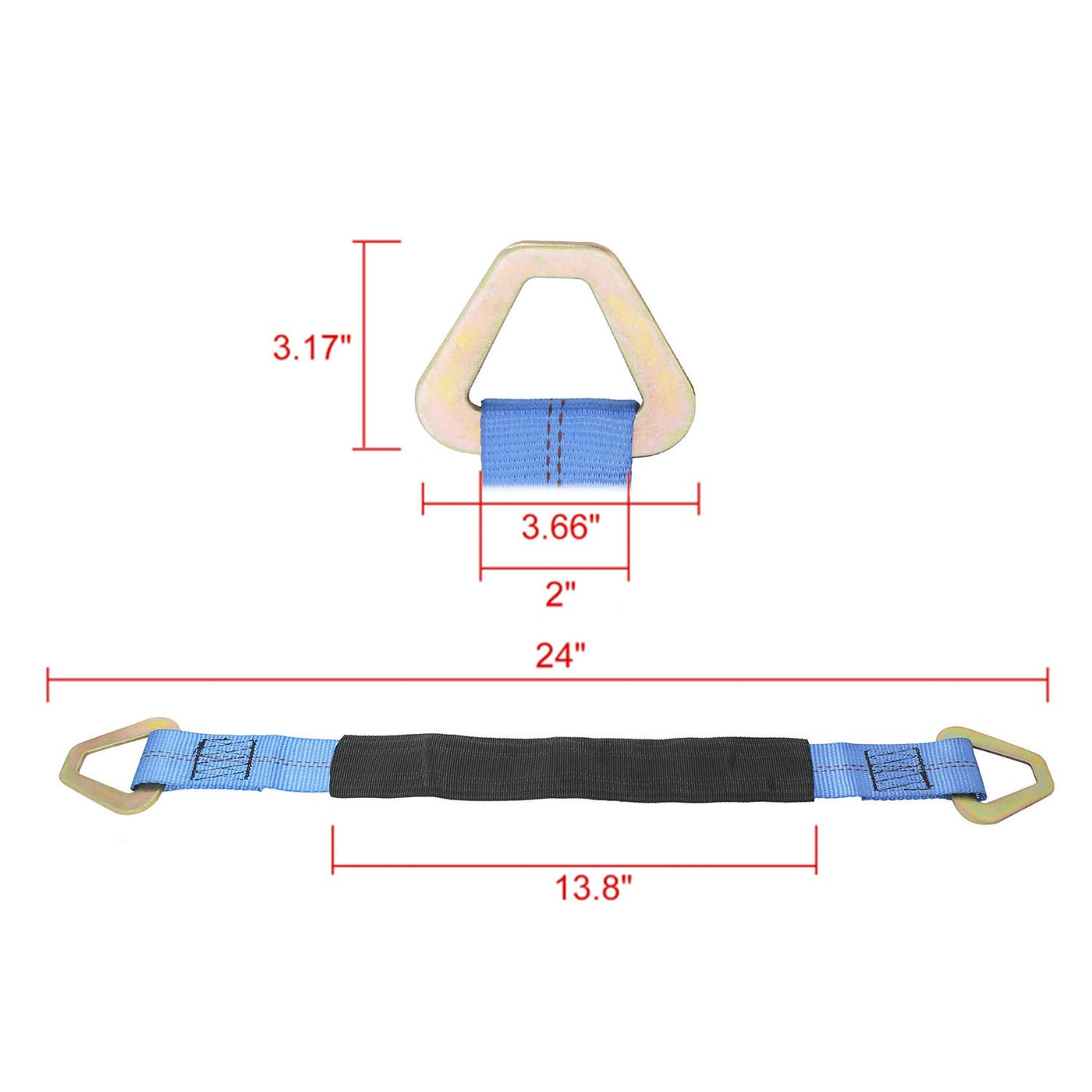 Axle Strap Size:24''(L) X 2''(W) D-Ring Size:3.7'' X 3.2'' X 0.15'' D Ring Axle Strap Working Load Limit: 3,333 Lbs Axle Strap Breaking Strength: 10,000 Lbs The D-Ring Can Compatible With Snap Hook,Grab Hook,T-Hook Or J-Hook Protctive Sleeve Give The Straps Extra Durablity To Extends The Life Of Axle Strap Axle Straps For Securing Autos Transport By Wrapping Around The Axle,Frame Rail Or Wheel Package 8 X D-Ring 4 X D Ring Axle Strap Heavy Duty 4 X Protective Sleeve