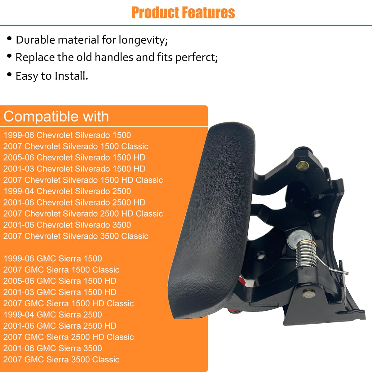 Description: Handle Color / Finish: Black Handle Material: Steel And Plastic Package Contents: Exterior Tailgate Latch Door Handle Cover With Lock Package Quantity: 1 Compatible With:&Nbsp;&Nbsp; 1999 2000 2001 2002 2003 2004 2005 2006 Chevy Silverado 1500 2007 Chevy Silverado 1500 Classic 2005-06 Chevy Silverado 1500 Hd 2001 2002 2003 Chevy Silverado 1500 Hd 99 00 01 02 03 04 05 06 2007 Chevy Silverado 1500 Hd Classic 1999 2000 2001 2002 2003 2004 Chevy Silverado 2500 2001 2002 2003 2004 2005 2006 Chevy Silverado 2500 Hd 2007 Chevy Silverado 2500 Hd Classic 2001-06 Chevy Silverado 3500 2007 Chevy Silverado 3500 Classic 1999 2000 2001 2002 2003 2004 2005 2006 Gmc Sierra 1500 99 00 01 02 03 04 05 06 2007 Gmc Sierra 1500 Classic 2005-06 Gmc Sierra 1500 Hd 2001-03 Gmc Sierra 1500 Hd 2007 Gmc Sierra 1500 Hd Classic 1999-04 Gmc Sierra 2500 2001-06 Gmc Sierra 2500 Hd 2007 Gmc Sierra 2500 Hd Classic 2001-06 Gmc Sierra 3500 2007 Gmc Sierra 3500 Classic 2003-09 Hu-Mmer H2 Crew Cab Notes: Enter Your Vehicle Information In The Compatibility Chart At The Top Of The Listing To Check If The Door Handles Fit Or Not.