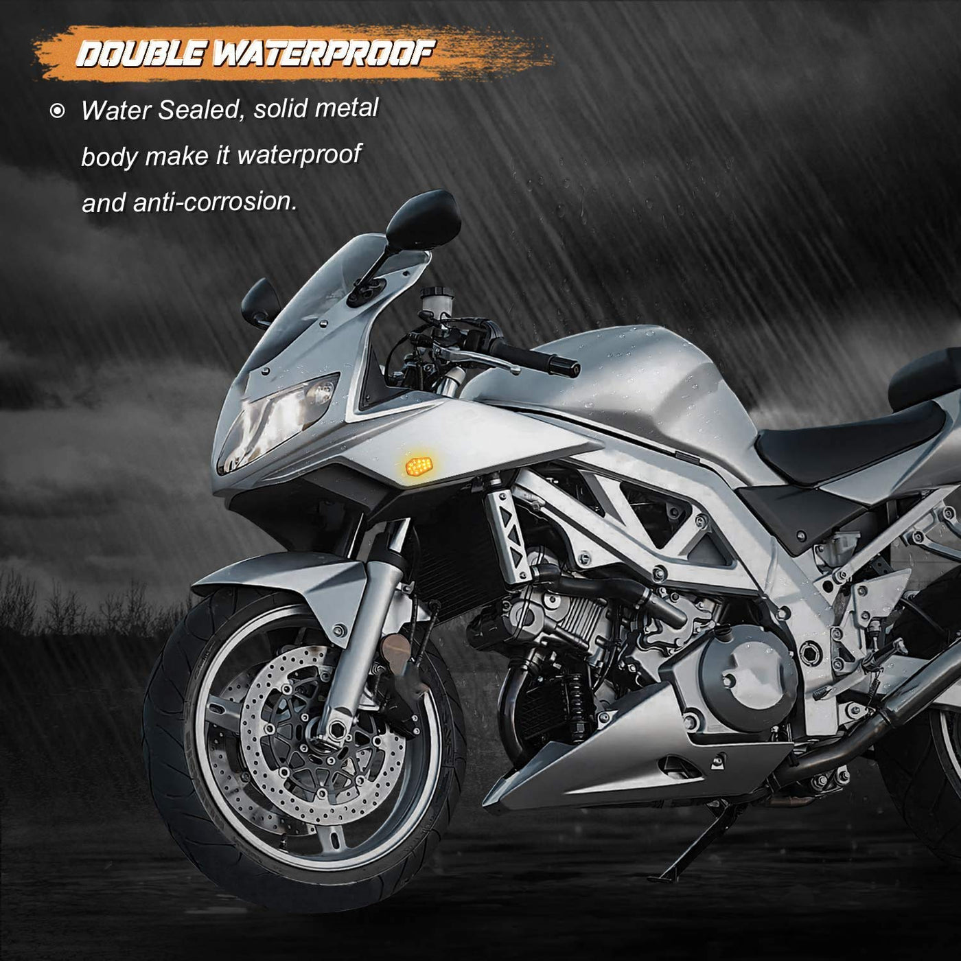 ?Compatibility?Designed To Fit 12V Motorcycle With 10Mm Mount Hole. Such As Compatible With Suzuki Gsxr 600 2001-2005; Kgsxr 750 2000-2005; Suzuki Gsxr 1000 2001-2004; Suzuki Sv 650/650 S 2003-2007; Suzuki Sv 1000/1000 S 2003-2007; Suzuki Bandit 600 S 2000-2007; Suzuki Bandit 1200 S 2000-2005; Suzuki Bandit 1250/1250 S 2006-2008; Suzuki Dl 650/1000 2004-2008 | ?2X Brighter Than Factory Light?Built In 15Pcs High Power Led Chips Formed Facing Cluster, Which Is 2X Brighter Than Your Factory Turn Signals. Smoked Lens Cover, Smooth And Transparent Surface, Hard And Durable Abs Plastic Protect The Blinker Lights From Minor Impact Effectively. A Best Replacement For An Old Or Defective Item | ?Durable And Brighter?Made Of High Quality Plastic Material, Processed With Ultra Heat Treatment Housing, Anti-Scratch And Waterproof. We Put The Product In Water At A Depth Of 5 Meters, Several Hours Later, No Water Inside. Built In High Power Led Chips, Produce Lower Consumption, Over 20000 Hours Lifespan, Providing Lasting Performance. | ?Easy Installation?Easy To Install. Black Wire -- Negative; Yellow Wire -- Turn Signal. Direct To Fitment. You Just Need Take Off Your Factory Led Turn Signal Light, Then Install New Replacement. If You Have A Hyper Flash Issue With Your Led Indicators, You Can Put A Resistor On Each Light Or Upgrade Your Flasher | ?Buy With Confidence?Come With 2Pcs Amber Motorcycle Led Turn Signals.
