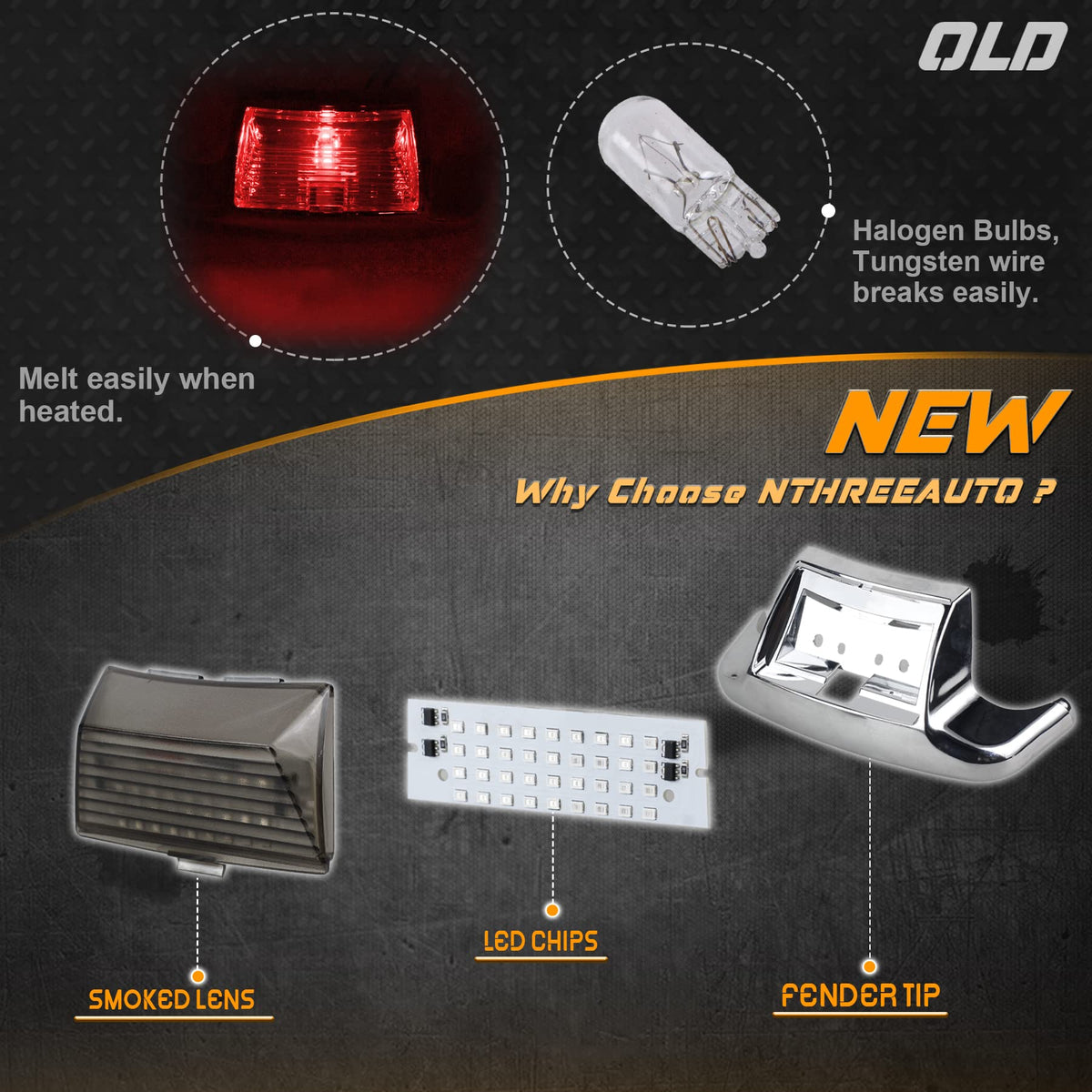 Nthreeauto 2Pcs Front Rear Smoked Fender Light Led Fender Tip Tail Lights Compatible With Harley Road King Electra Glide Ultra C