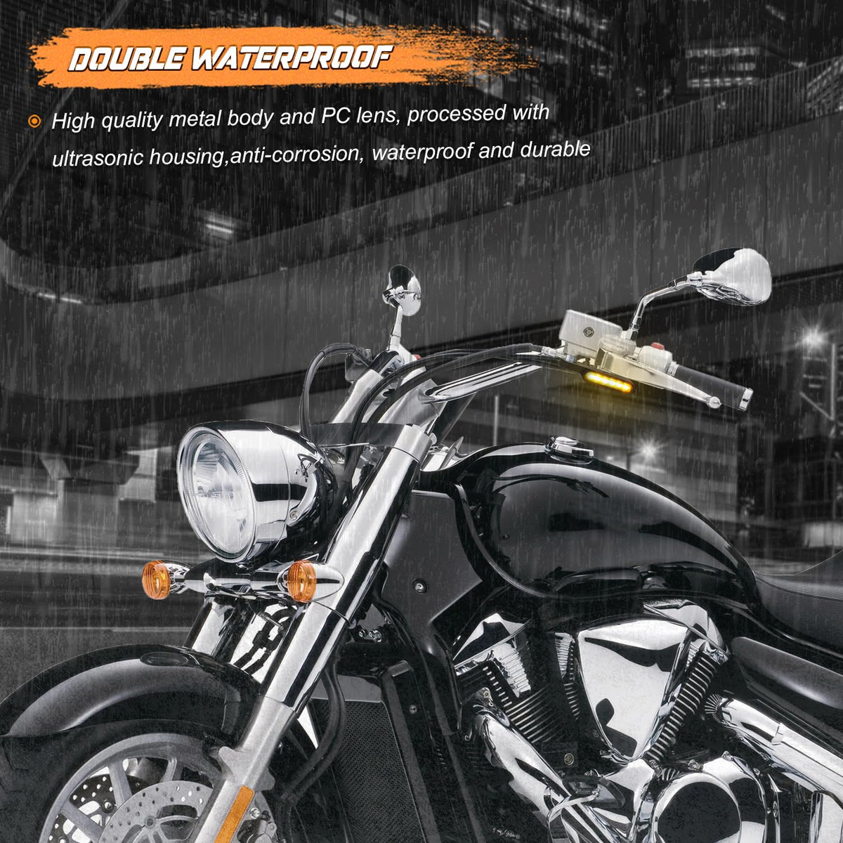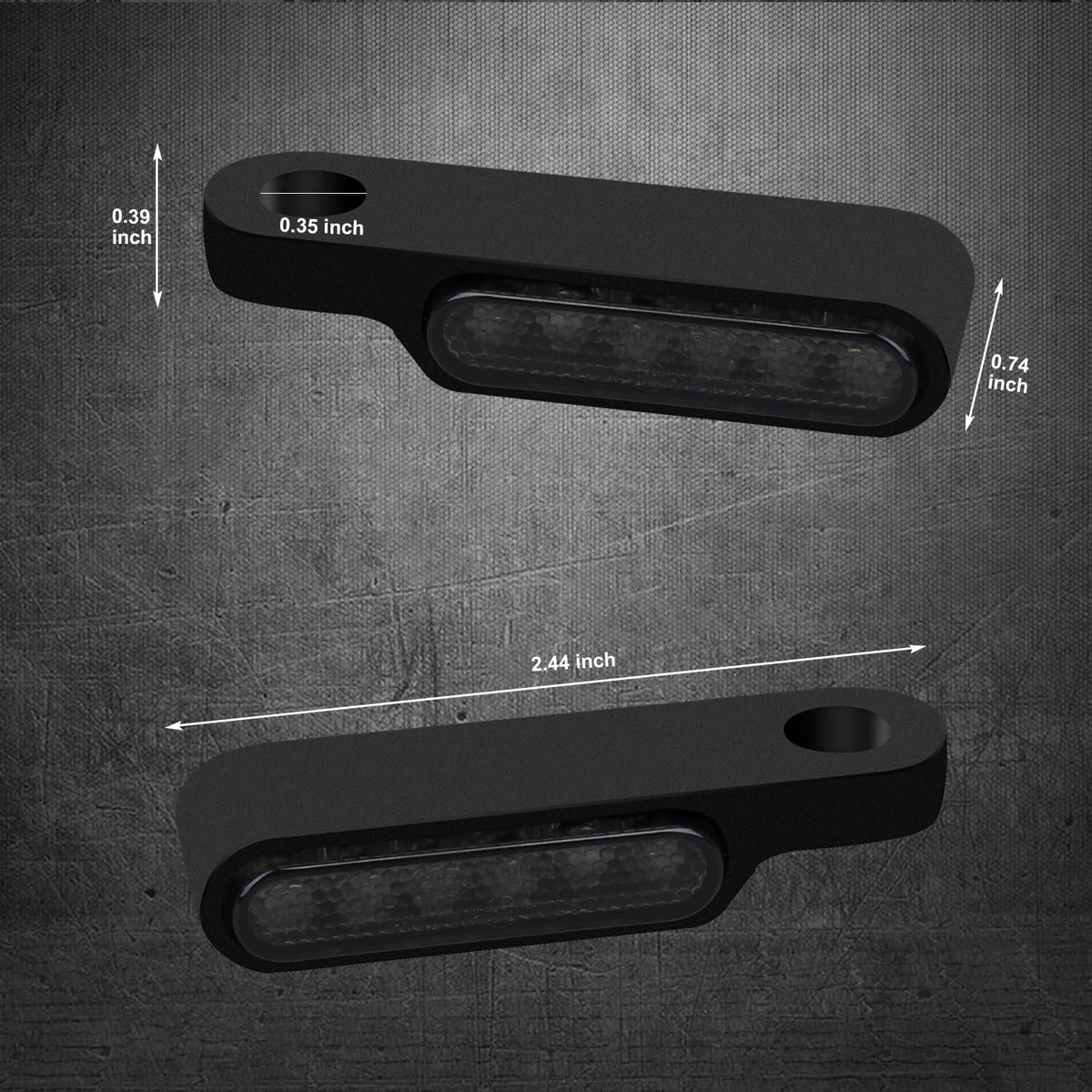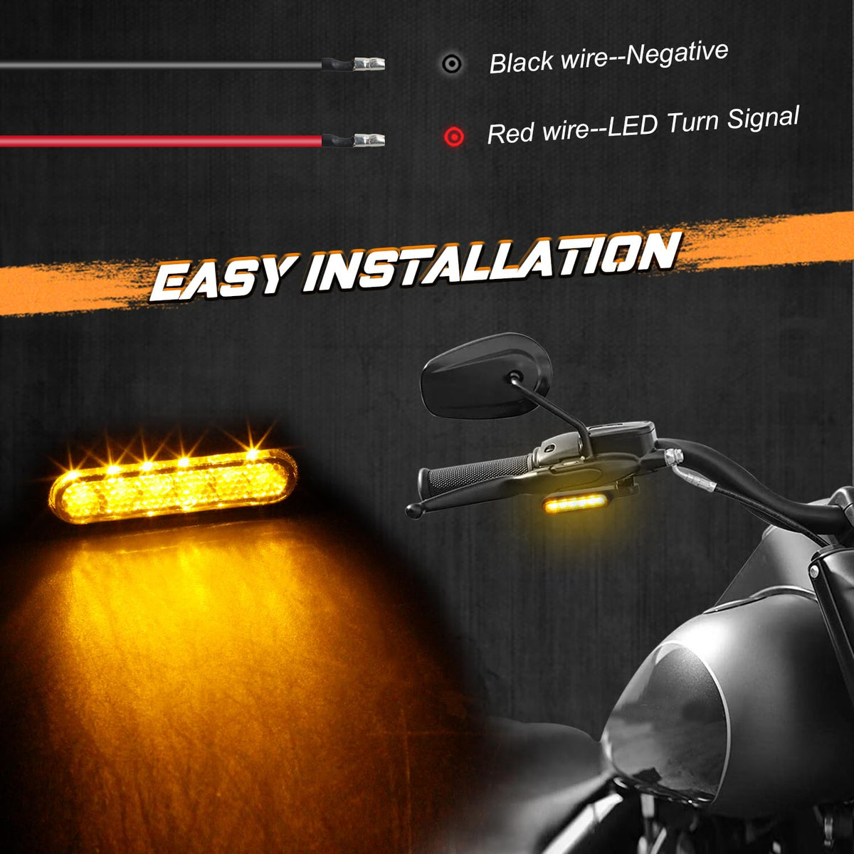 Features:Function: Mini front handlebar turn signal indicator lightsHigh-intensity LEDs with amber and smoke lenses.LED motorcycle turn signals can be using the mirror stem mounting bolts to mounted under the handlebar brake clutch lever.Chrome anodized finish.Easy to install, no modification needed.Long lasting, low power consumption, energy saving.Specifications:Material: ABS Plastic Lens, Metal BracketBody Color: BlackLens Color: SmokeLights Color: AmberVoltage: 12VBolt hole size: approx. 8mmFitment:Universal motorcycle blinkers fit for 12V motorcycle with 8mm mirror stem mounting bolts, such as compatible with Harley Dyna Fatboy Road King Sportster Softail Road Glide,Triumph Thunderbird Bonneville, Honda Shadow VLX 600 V-Star 650, Suzuki Boulevard, Yamaha, Suzuki, Kawasaki, DucatiNOTE: Please check and make sure this blinker for motorcycle fits your motorbikes before ordering.Package Included:2 x mini LED handlebar turn signals
