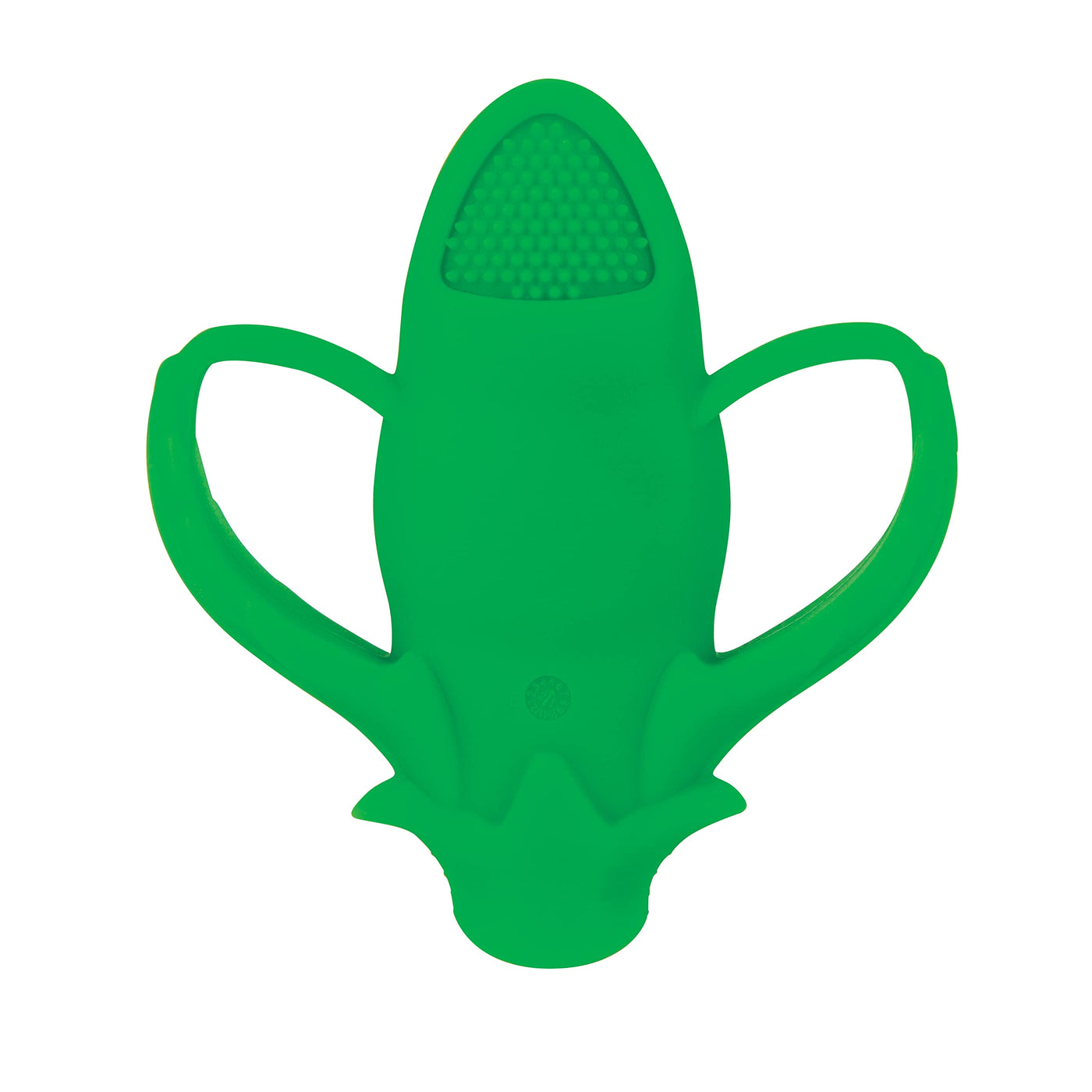 Teething is the pits, but with Nuby's Veggie Teether, it doesn't have to be. Our corn-shaped teething toy is a fun and interactive teether for babies ages 3 months and older that helps to soothe your baby's uncomfortable gums, while encouraging positive food association. This Nuby teething toy is made of 100% soft silicone for sensitive, tender mouths, and provides teething relief without being rough on delicate gums. The bright colors, fun shapes, and interesting textures of this teething toy appeal to your little one's sense of sight and touch. Toss this baby essential in your baby's diaper bag or stroller, so you always have teething relief on the go. At Nuby our goal is to help make the teething process just a little easier for you and your little one!