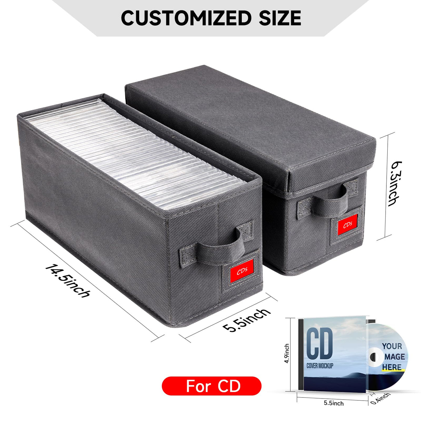 Nuswor Upgrades Cd Storage Box - Perfect Cd Case Storage Solution, Stackable Cd Organizer With Lid, 2Pack Cd Holder 14.37 X 5.5
