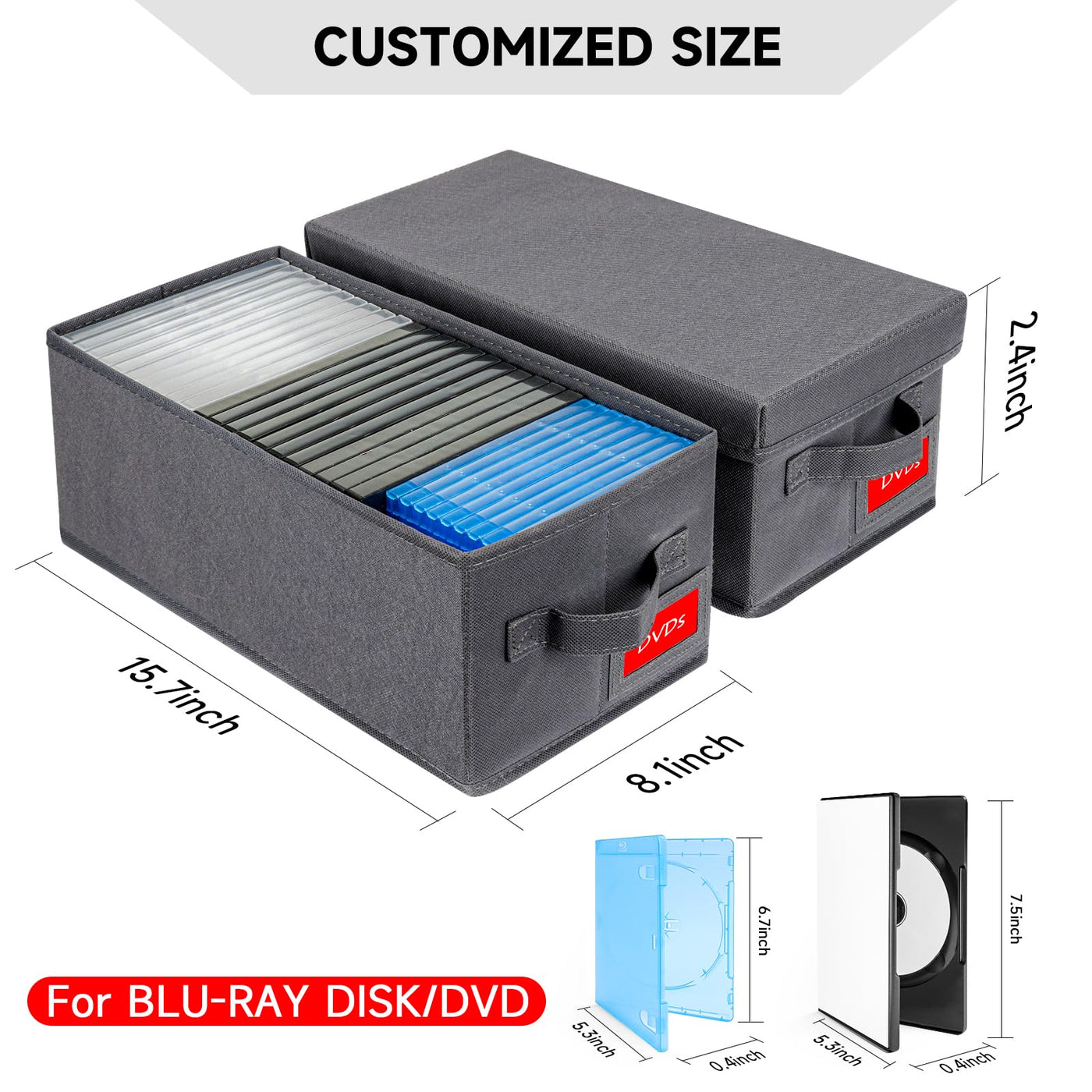 Transform your DVD collection with our ultimate DVD case holder organizer. Stackable and designed to hold up to 25 DVDs, our DVD storage box offer not just space efficiency but also protection from scratches and dust. The DVD organizer and storage case is a versatile solution, perfect for neat, categorized storage. Made with thick non-woven fabric and high stiffness cardboard, our durable DVD rack is built to last. With easy access to your favorite movies and games, it's time to sit back, relax, and enjoy your DVD collection like never before.