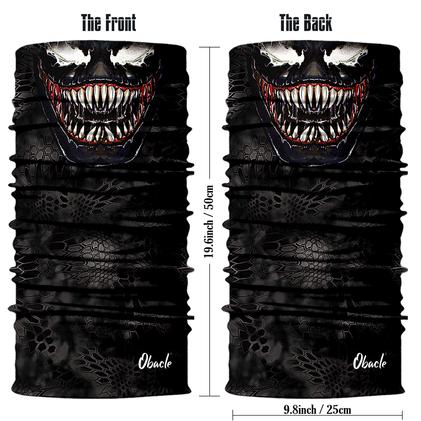 High Quality Headwear1 100% Polyester fiber: High quality Soft Material, NOT cheap material that easy to pill or tear; Elastic fiber to keep the mask in place and NOT Slide;2 Exquisite 3D design3 Breathable and thin lightweight4 Protect from Sun Dust Wind Sand Suitable for a variety of sports Running, Cycling, Biking, Climbing, Fishing, Hunting, Skiing, Snowboarding, Hiking, Camping, Motorcycle, Snowmobile Riding, Mountain Biking, etc. All-Year-Round Using Cool in summer, Warm in winter, Suitbale for you in all seasons.One Size19.7inch X 9.8inch.(LXW) The thickness size is Thin. High stretchable mask for head circumference is about 21.25inch-25inch; One Size Fits All Adults and Teenagers Kindly remindThe ends are designed as Non-lockstitch for better Elasticity but not ''broken''. And it will rope up naturally and bring you the comfortable using experience. Package include 1 x Half Face Mask