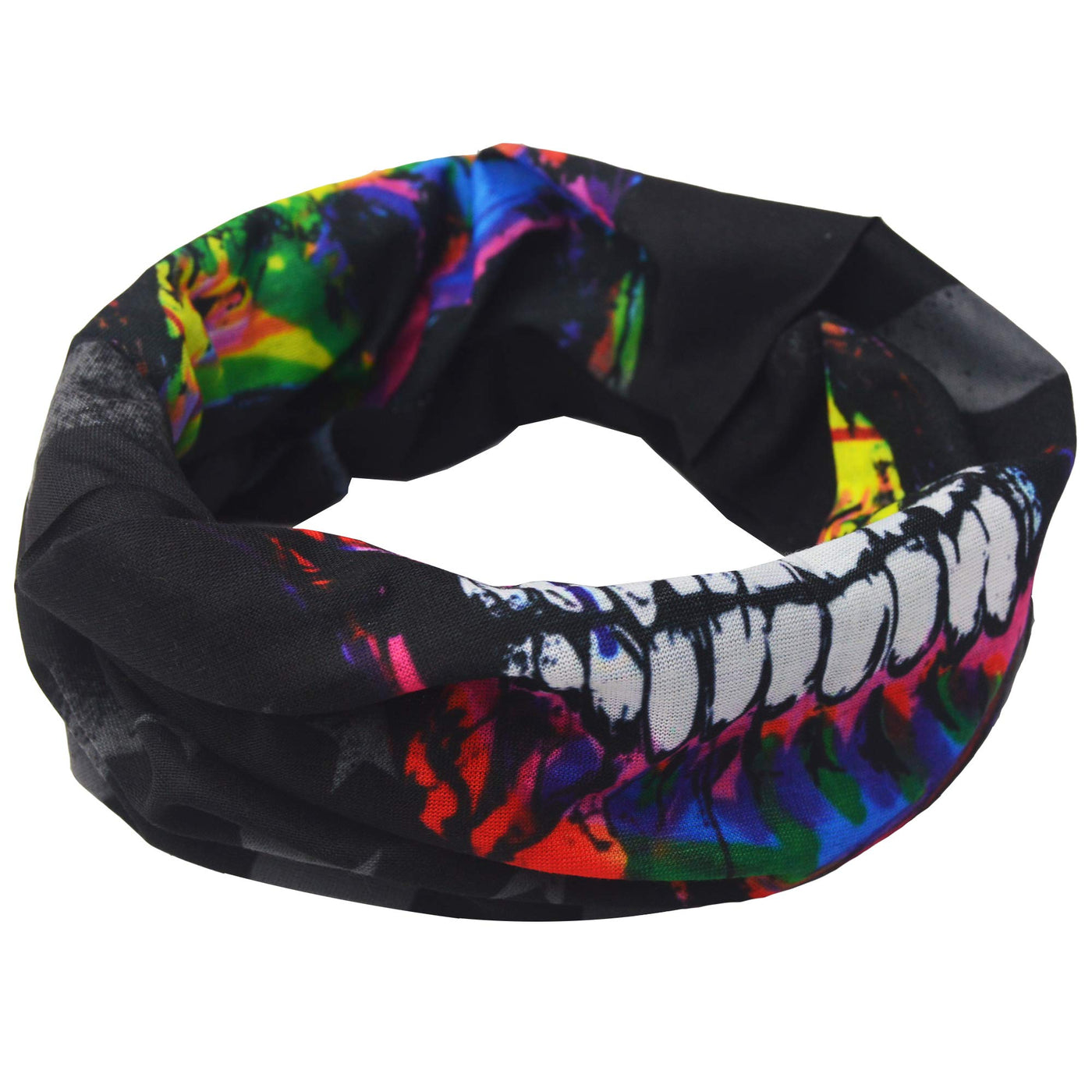 High Quality Headwear1 100% Polyester fiber: High quality Soft Material, NOT cheap material that easy to pill or tear; Elastic fiber to keep the mask in place and NOT Slide;2 Exquisite 3D design3 Breathable and thin lightweight4 Protect from Sun Dust Wind Sand Suitable for a variety of sports Running, Cycling, Biking, Climbing, Fishing, Hunting, Skiing, Snowboarding, Hiking, Camping, Motorcycle, Snowmobile Riding, Mountain Biking, etc. All-Year-Round Using Cool in summer, Warm in winter, Suitbale for you in all seasons.One Size19.7inch X 9.8inch.(LXW) The thickness size is Thin. High stretchable mask for head circumference is about 21.25inch-25inch; One Size Fits All Adults and Teenagers Kindly remindThe ends are designed as Non-lockstitch for better Elasticity but not ''broken''. And it will rope up naturally and bring you the comfortable using experience. Package include 1 x Half Face Mask