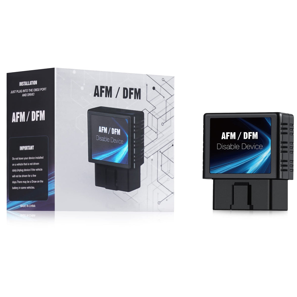Q: What is the installation process for the OBDAFM AFM/DFM Disabler?A: Installation is simple and requires no tools. Just plug the device into your onboard OBD-II port, and it will indicate connectivity with a sequence of flashing blue lights.