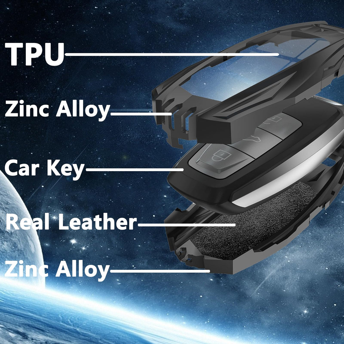 The Ocezbiis Key Fob Cover Made With Premium Tpu,Zinc Alloy And Real Leather.The Button Position Adopts Tpu For More Convenient And Intuitive Use Of The Key. The Back Is Made Of Genuine Leather, Providing A Better Feel And User Experience. The Overall Structure Is Made Of Zinc Alloy, Which Can Maximize The Protection Of The Key And Is Resistant To Falling And Not Being Damaged.