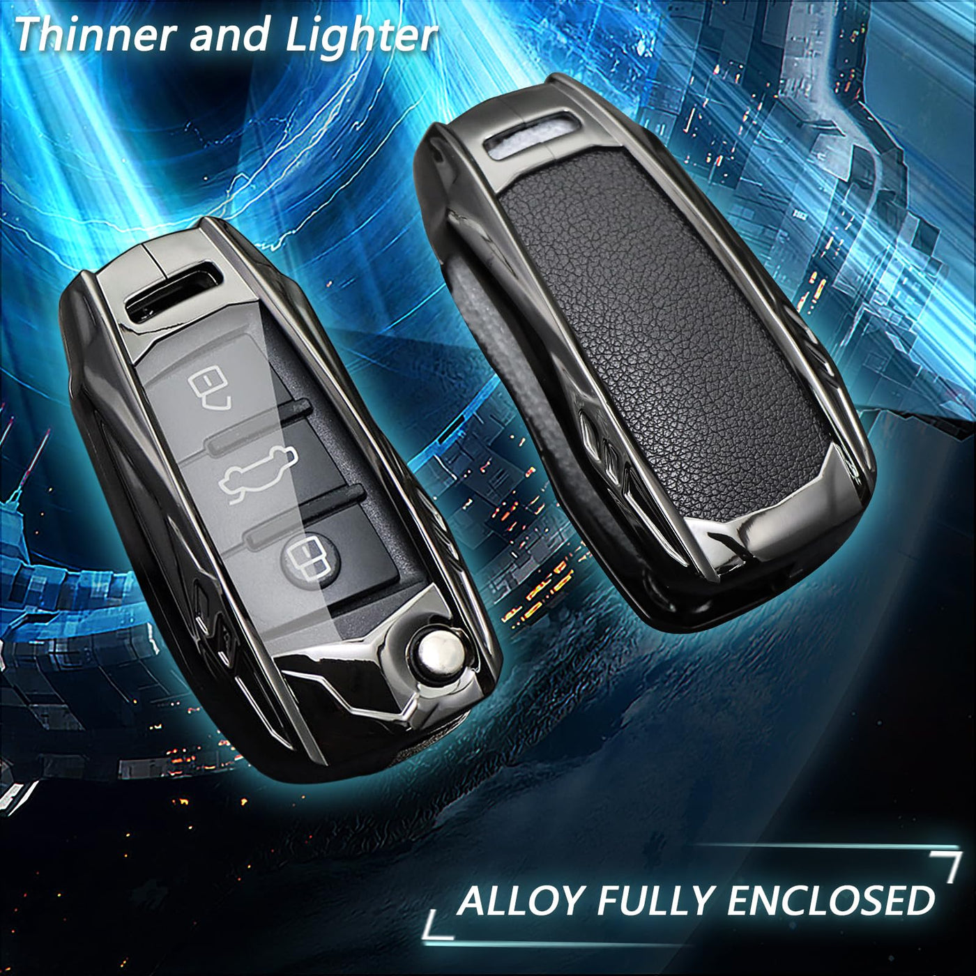 Ocezbiis For Audi Key Fob Cover,Keychain,Zinc Alloy Protection Car Key Case Compatible With A1 A3 Q3 Q7 R8 A6L Tt Tts Smart Remo