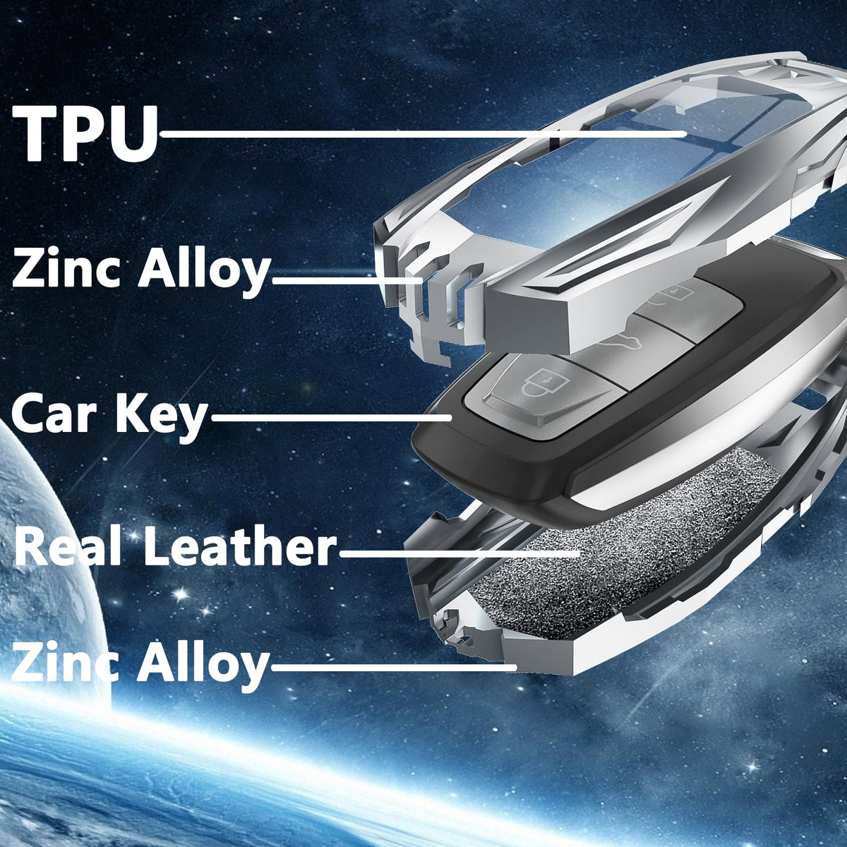 Q: What materials are used in the Ocezbiis key fob cover?A: The Ocezbiis key fob cover is crafted from premium TPU, zinc alloy, and genuine leather. This combination provides robust protection while ensuring a comfortable feel and intuitive use of the key buttons.