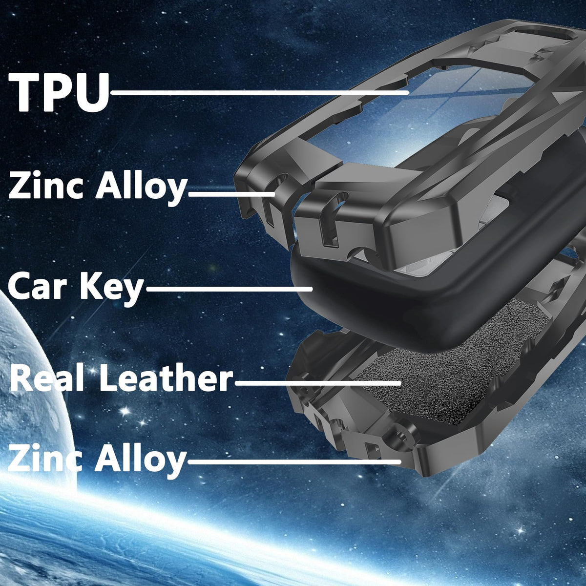 The Ocezbiis key fob cover made with premium TPU,zinc alloy and Real leather.The button position adopts TPU for more convenient and intuitive use of the key. The back is made of genuine leather, providing a better feel and user experience. The overall structure is made of zinc alloy, which can maximize the protection of the key and is resistant to falling and not being damaged.