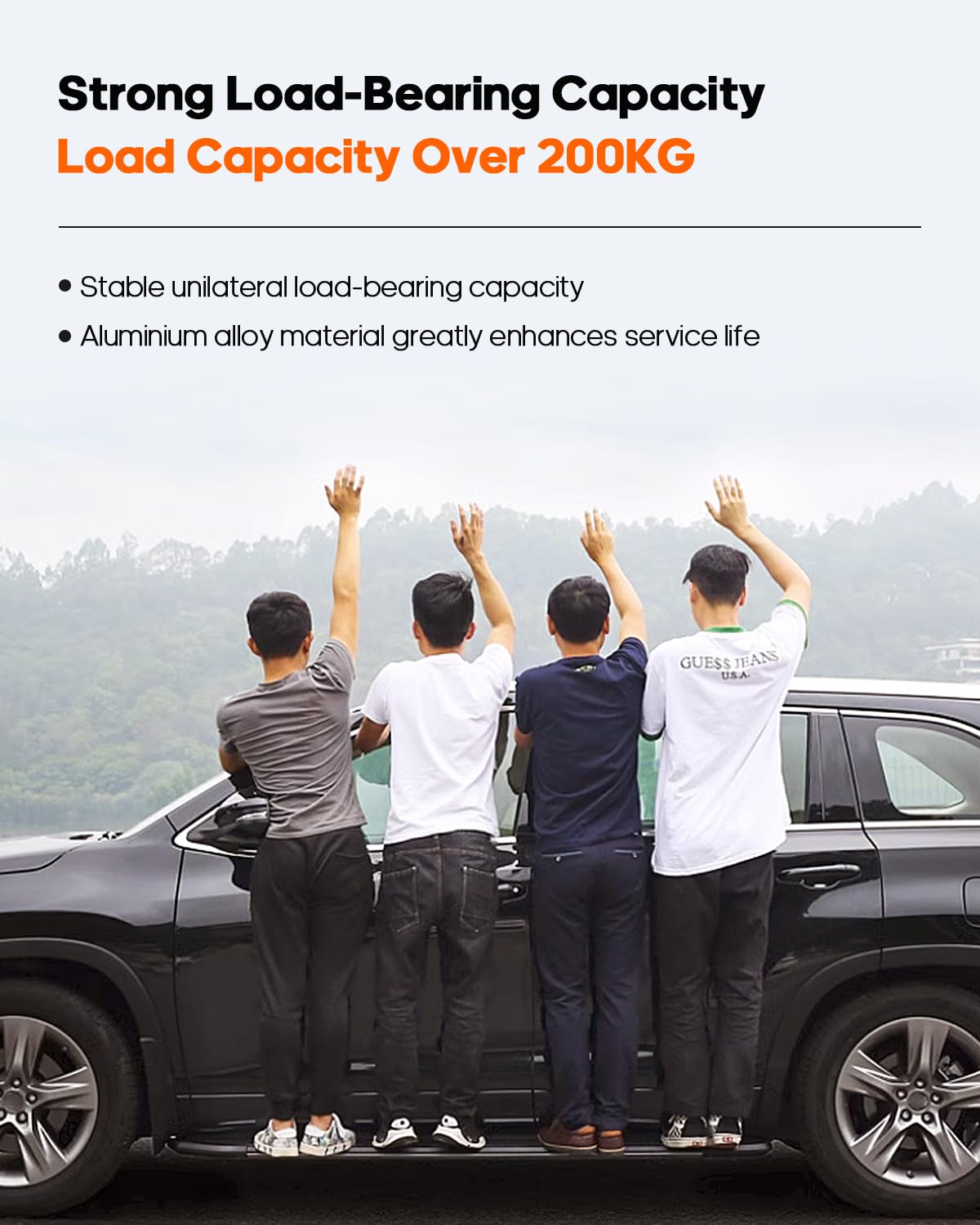 Q: What is the weight capacity of the OCPTY Running Boards?A: These running boards are designed to support a weight capacity of up to 200kg, ensuring safety and reliability for users getting in and out of the vehicle.