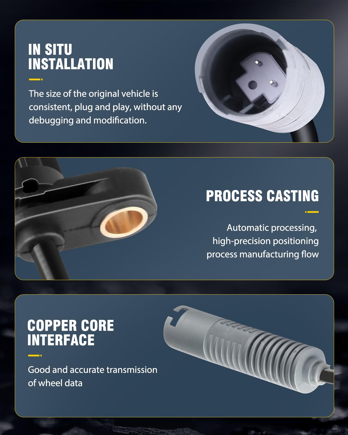Q: How does the ABS wheel speed sensor function in my vehicle?A: The ABS wheel speed sensor measures the rotational speed of the wheels and sends this information to the Engine Control Module (ECM). This data helps the ECM determine if the wheels are locking up, enhancing vehicle safety and performance.