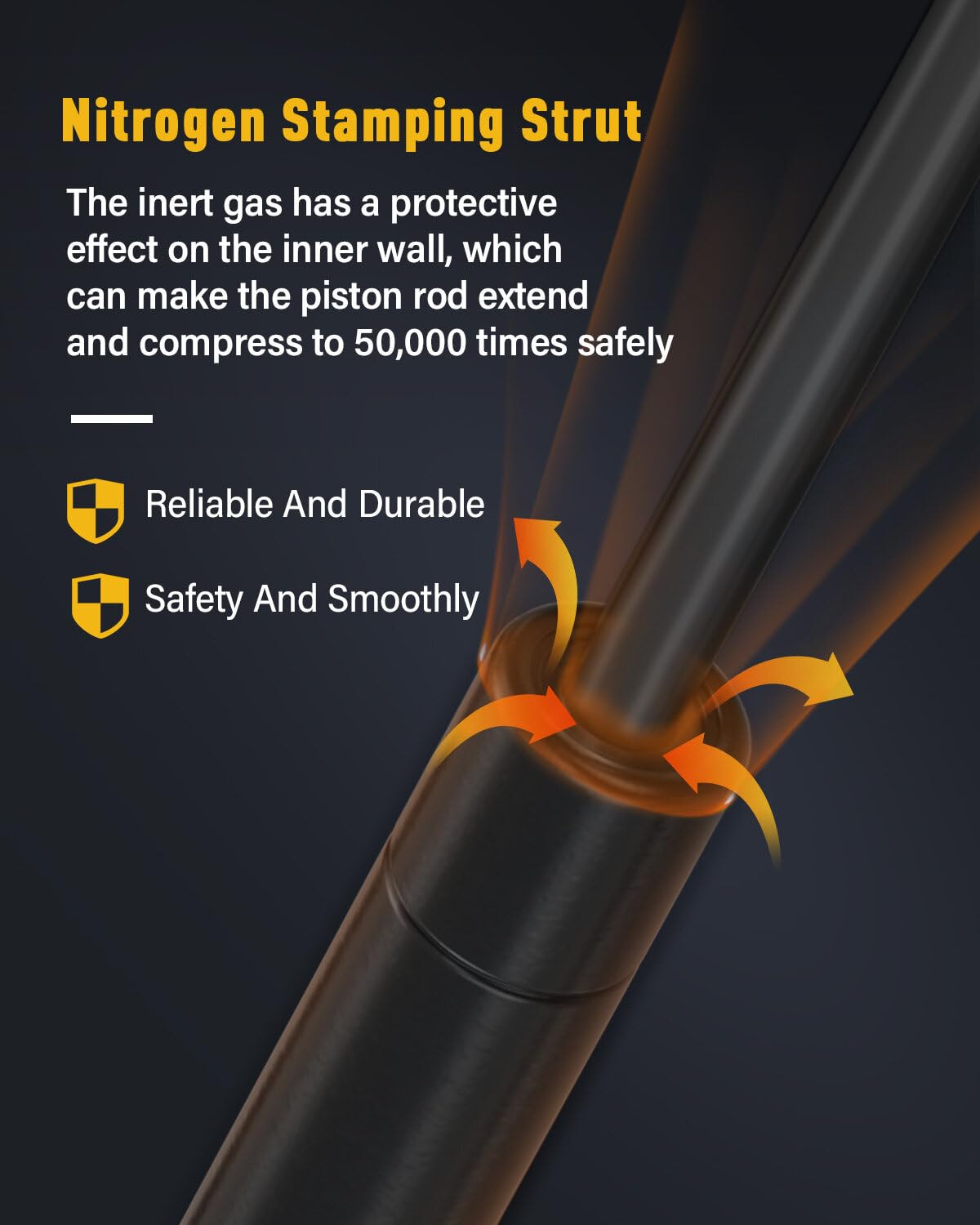 Q: What is the quality of the materials used in these lift supports?A: The OCPTY Lift Supports are made with premium quality materials, including a precision steel cylinder designed to withstand high bearing pressure, and they feature sealing technology to prevent leakage, enhancing durability and performance.