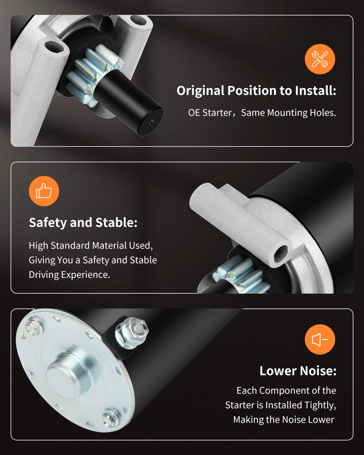 Q: What makes the OCPTY Starter different from other starters?A: The OCPTY Starter stands out due to its 100% inspection process, ensuring it meets or exceeds OE manufacturers' torque, amperage draw, and RPM standards. Additionally, it features high-quality components like new high-temperature caps and copper windings for enhanced durability and performance.